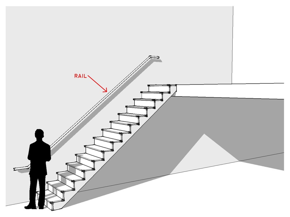 Another rail that will be needed is a handrail adjacent to the wall. The design, size and position of this rail is governed by building codes.
