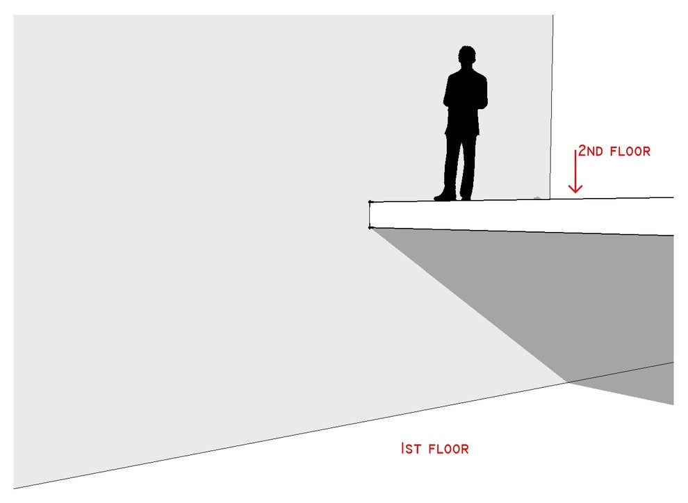 Preventing falls. While the stair is complete, our friend Bob can't make his way down it safely until there are railings. On the open side of the stair as well as at the second-floor landing, there should be a guardrail (not shown) that will prevent Bob from falling to the floor below.