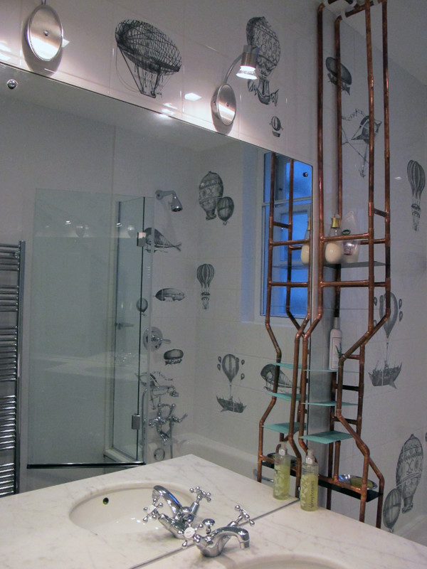 When Andre Rothblatt’s clients, a San Francisco couple in the tech industry, asked him to give their powder room steampunk style, he had to Google the word. But poring over images that he says “celebrate the industrial age of technology, like the steam locomotion, with a retro-future slant” appealed to him immediately. He quickly caught on and focused on four key elements: pipes, gears, gauges and a sense of humor, incorporating all into the powder room.