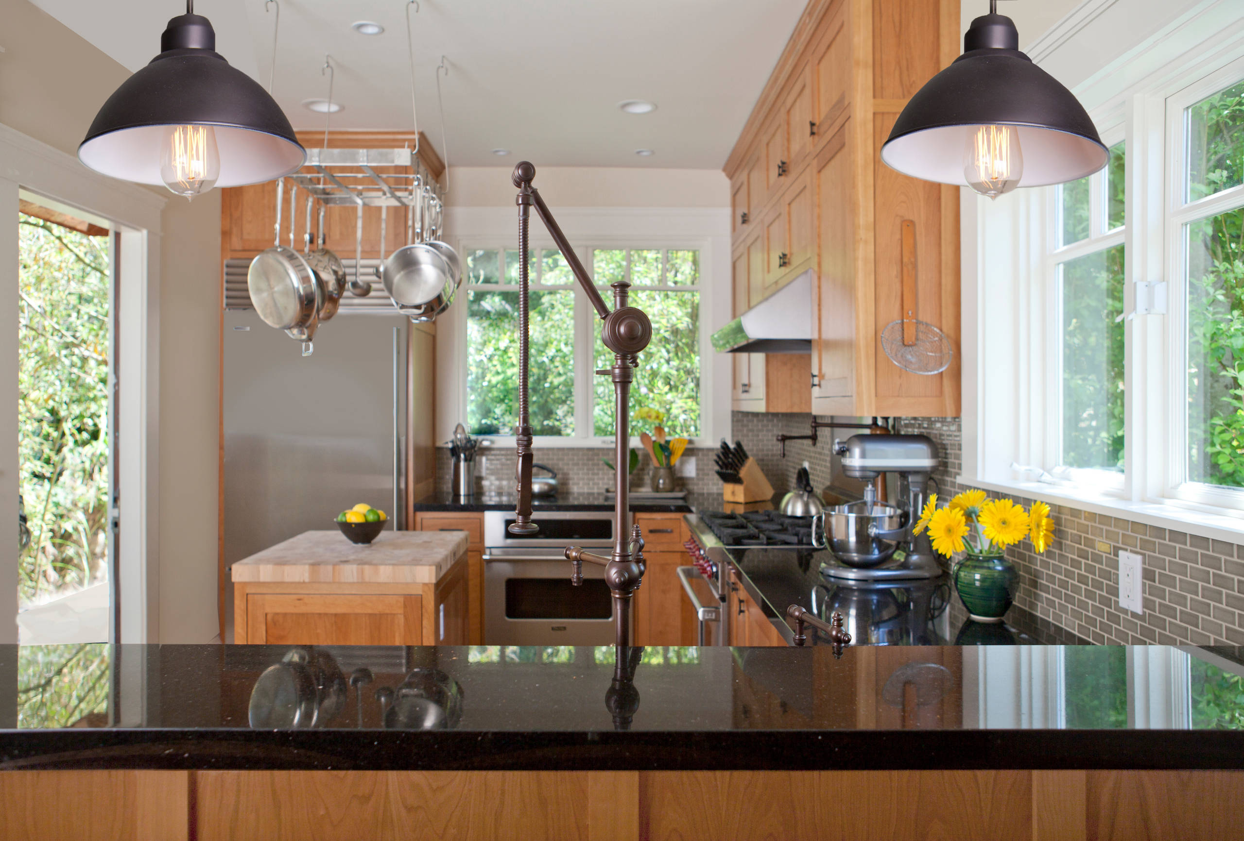 While the rest of the house is done in a simple style that reflects its Craftsman roots, the kitchen faucet definitely nods to the steampunk aesthetic.