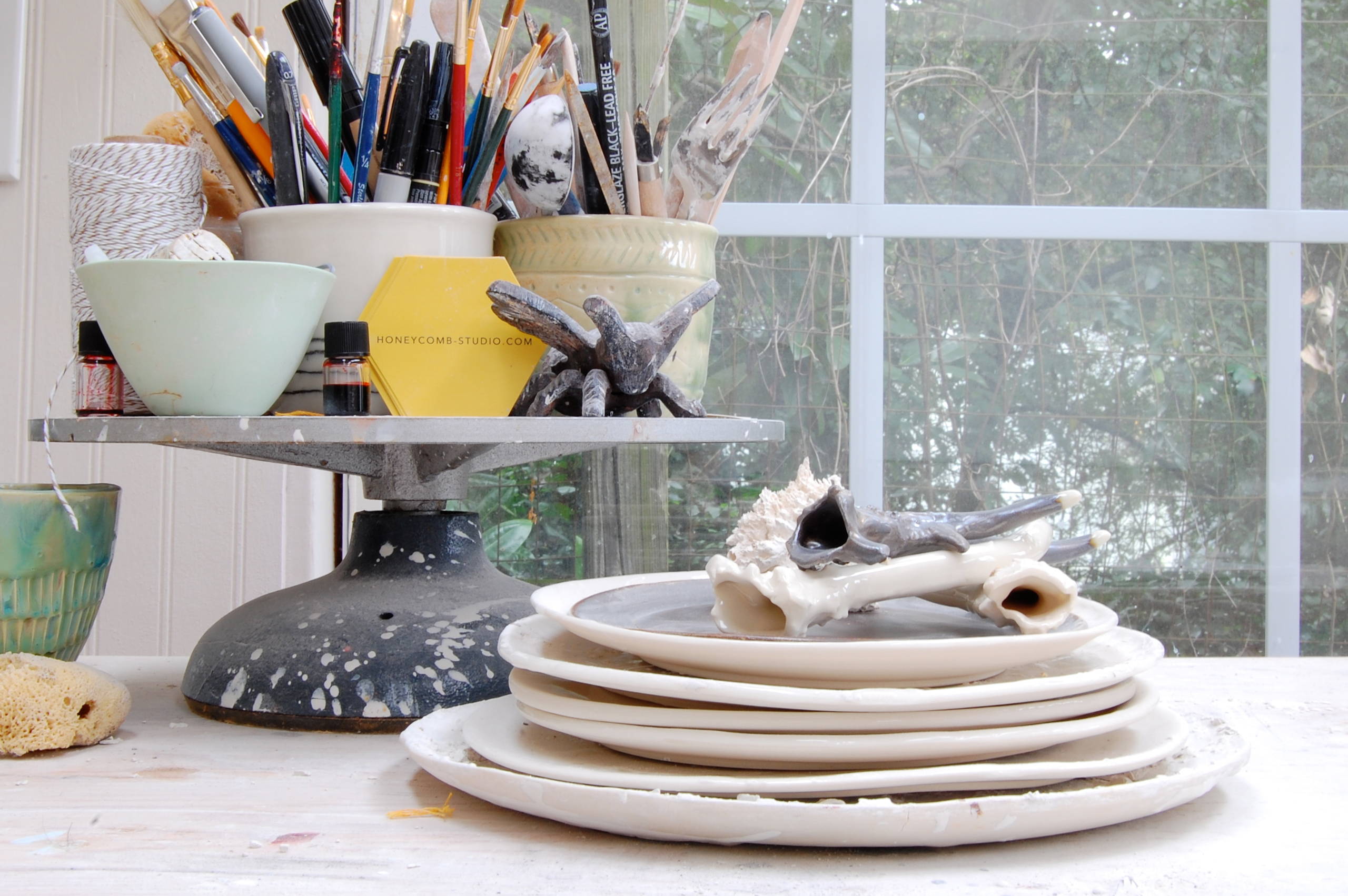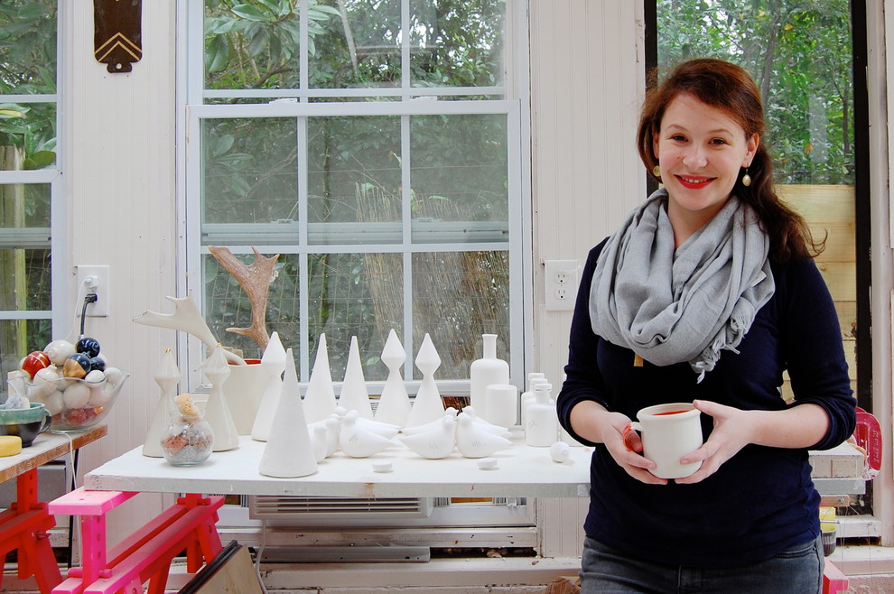 Courtney Hamill of Honeycomb Studio loves the simplicity of basic forms. This aesthetic echoes gracefully through her work as a porcelain ceramicist, and in her sunny backyard workshop nestled in Atlanta’s West Midtown neighborhood.