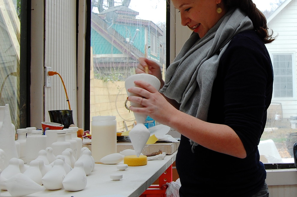 Hamill fell in love with the art form after taking a ceramics class in college. She scored an apprenticeship in the field, but graduation and a job pushed her passion aside for several years. Finally, Hamill decided, it was “now or never.” She quit her day job to pursue her creative interests full-time.