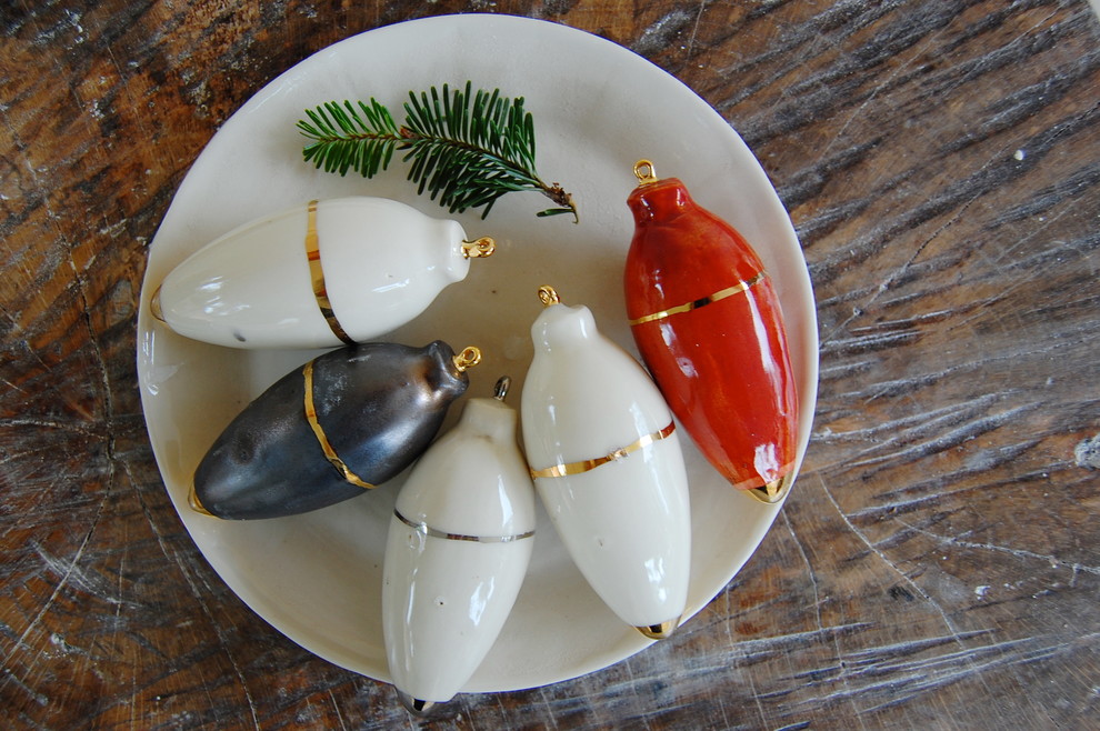 A few colorful ornaments from Hamill’s holiday heirlooms series await the upcoming season.