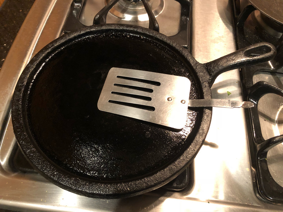 “My mom passed away many years ago, but I have memories of her making Indian dosa and pancakes with this skillet and spatula,” Elizabeth Joseph writes of the tools pictured here. “The plastic handle of the spatula burned off 10 years ago, and since then I have purchased plenty of new spatulas. But my mom’s spatula is the only one that works in my hand.”