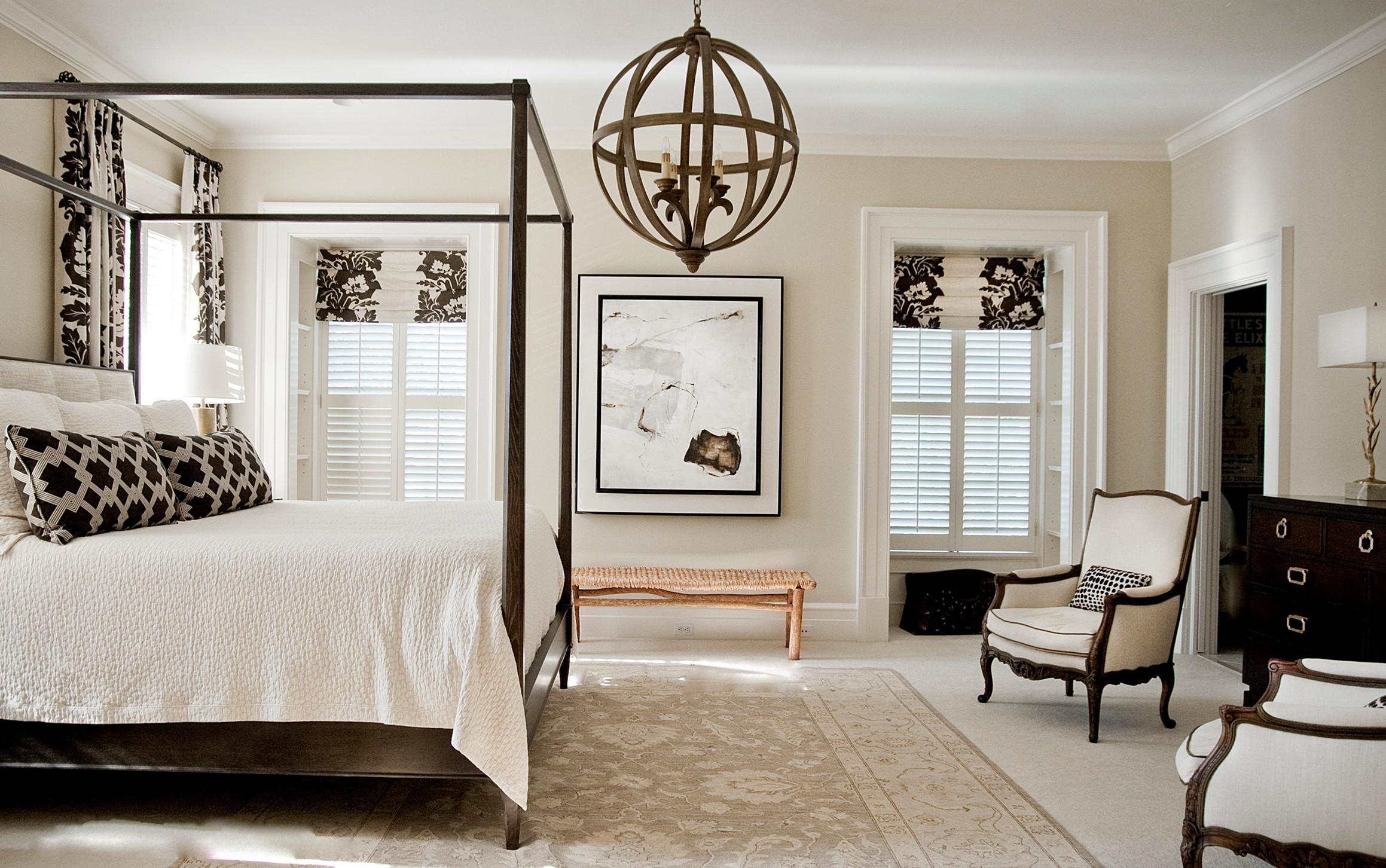 Creamy walls, soft tans and dark accents take the ubiquitous cookie palette to a sophisticated level in this bedroom.