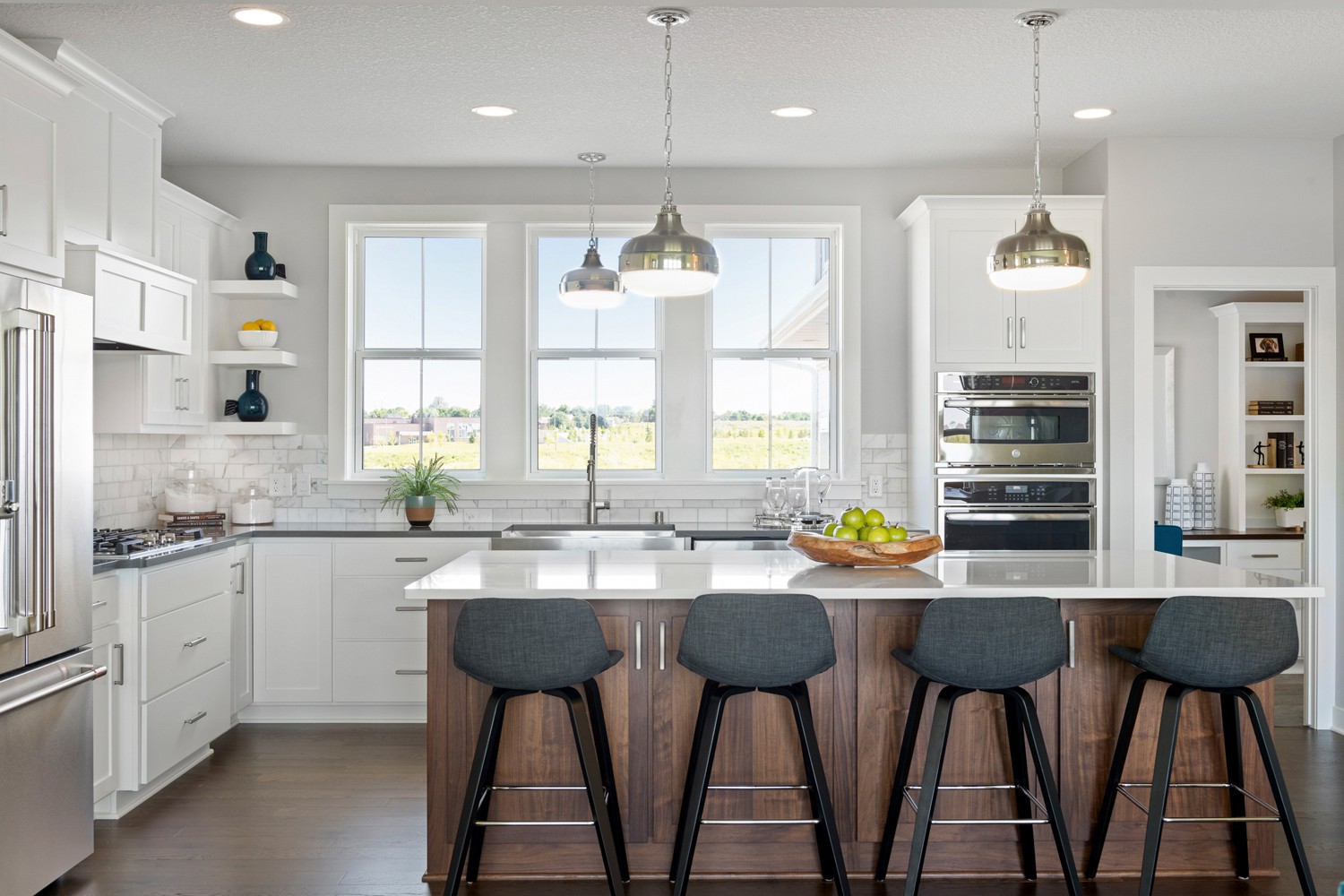 Designer Bobbi Alderfer of Lifestyle Design used walnut cabinetry in this Illinois kitchen. “Its finish color, construction and simplicity made it the natural choice for this kitchen overhaul,” Alderfer says.