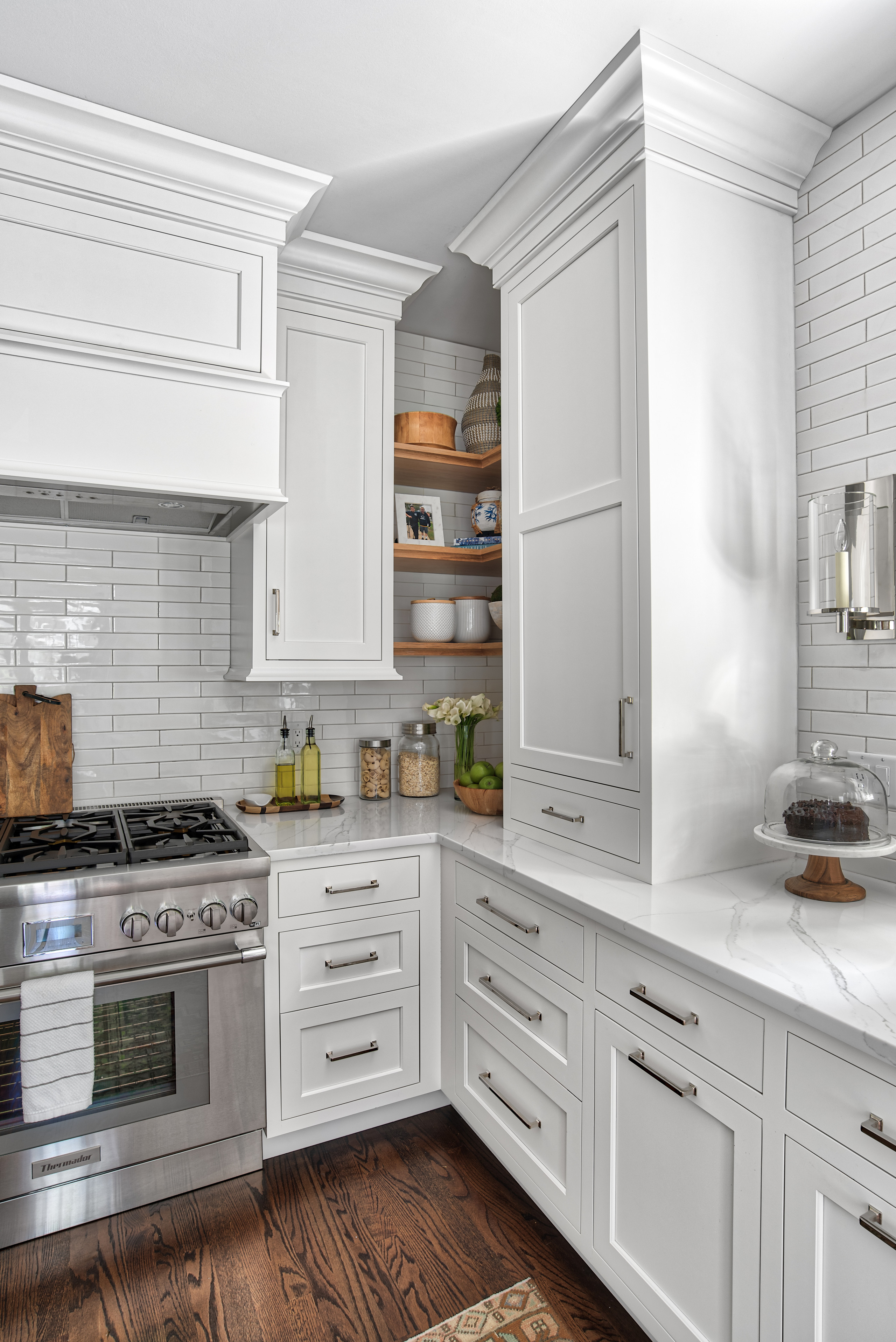 She used Calacatta marble subway tile for the backsplash in the Minnesota kitchen shown here.