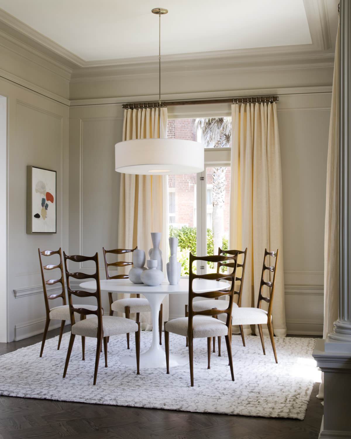 Standing back and using a lens with a normal focal length and not a wide angle puts all the items in a comfortable proportion to one another. There is no distortion that a wide-angle lens would create. Of course, the trade-off is that we do not see the whole room, but we do get a nice feeling of the room.