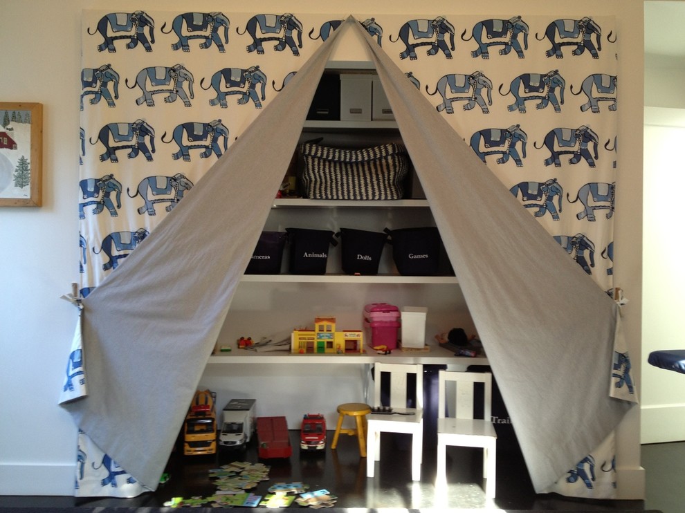 Hershman says that the danger of putting toys behind closed doors is that kids tend to follow the “out of sight, out of mind” philosophy. “It can work, especially for older kids,” she says. “I find it’s even more important to label bins in this setup.”