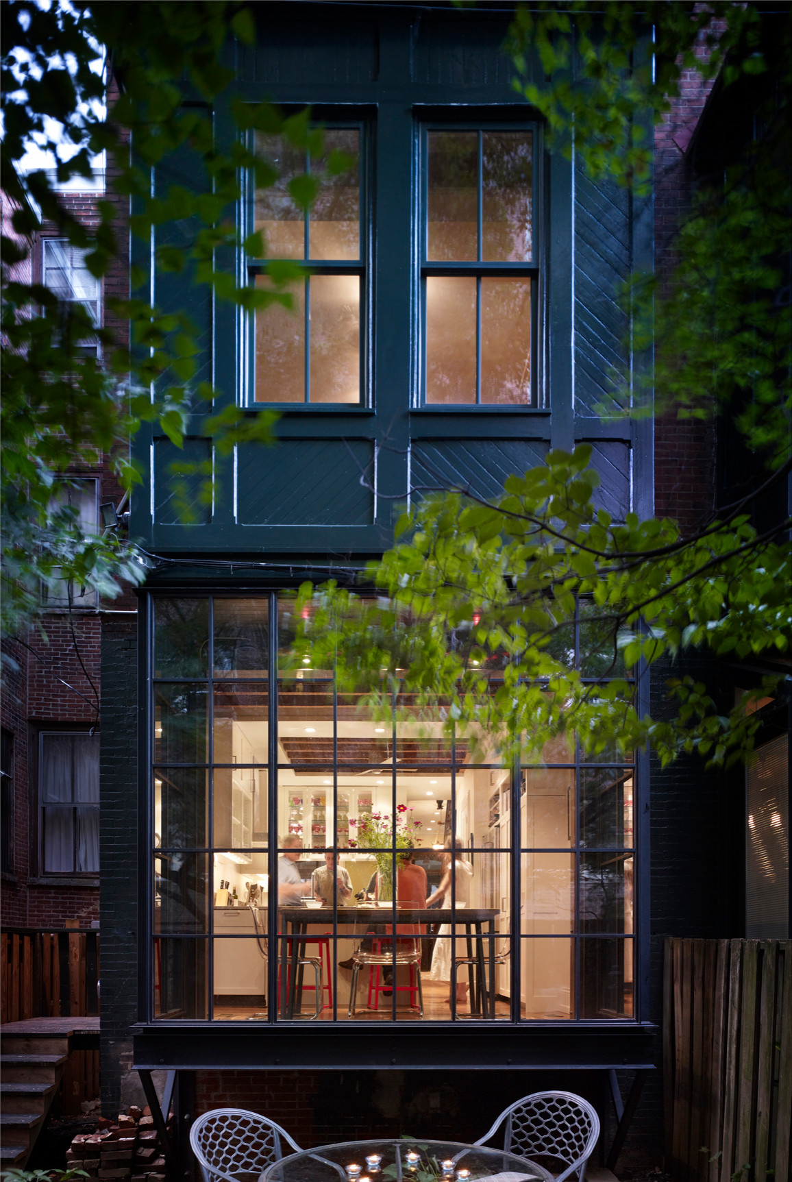 On a smaller scale, consider a transitional-style bay bumped out onto the patio, again linking the activity of the outside space to the inside space.