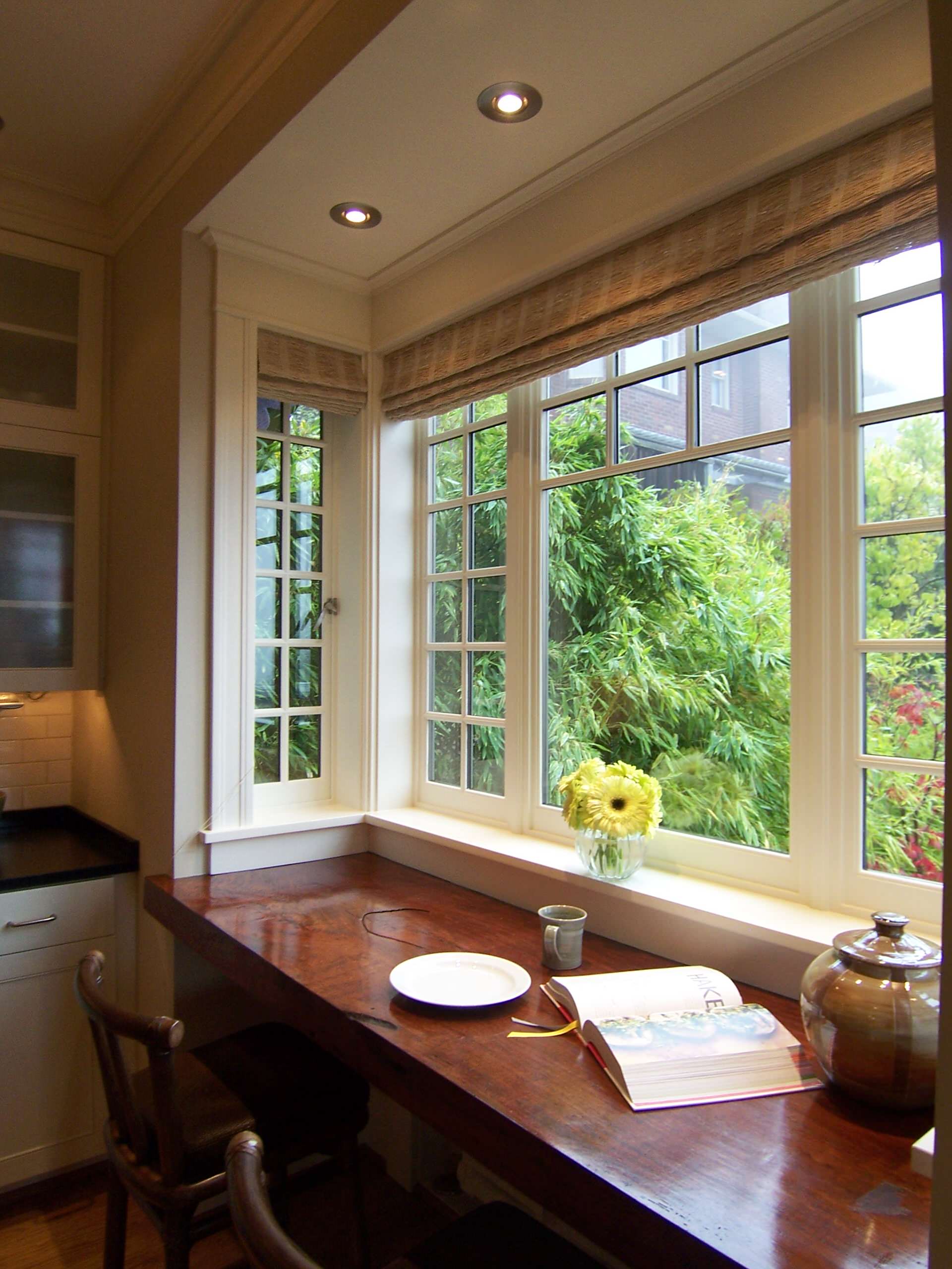 If you’re adding a bay window and want to make it a spot for eating, consider raising the windowsills so they’re right above table height, then build a dining counter directly into the bay.