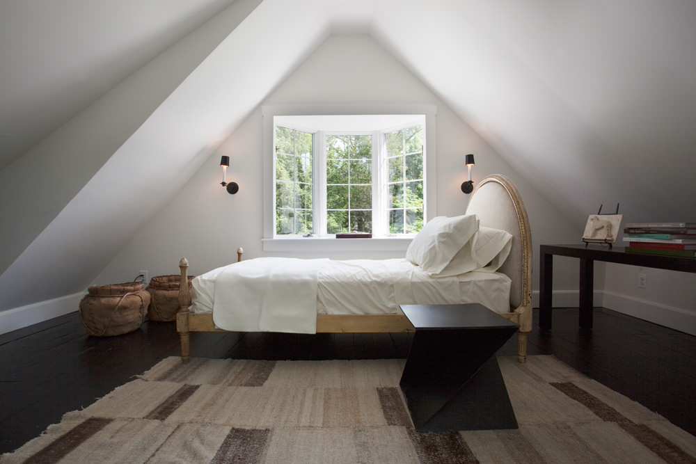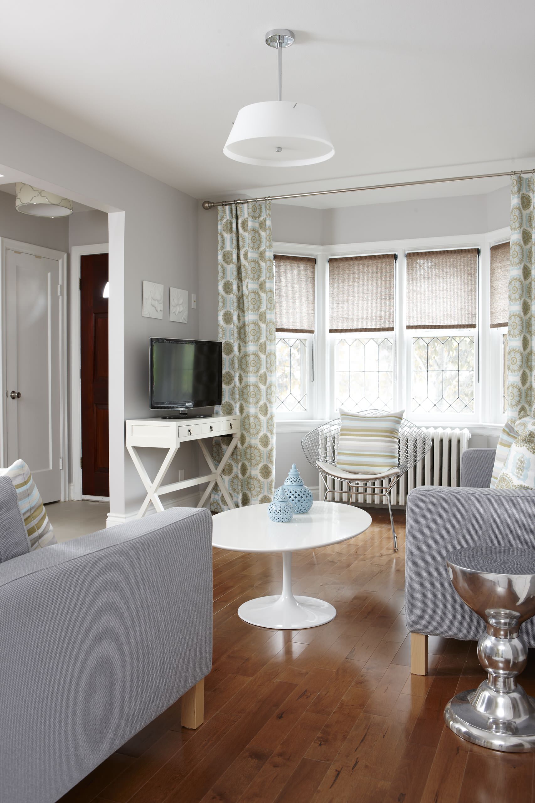 Maybe you have a tall, freestanding radiator in your bay window. In this home, the owners accepted that fact and used a single chair and window treatments to define the space but still make it feel like part of the room.
