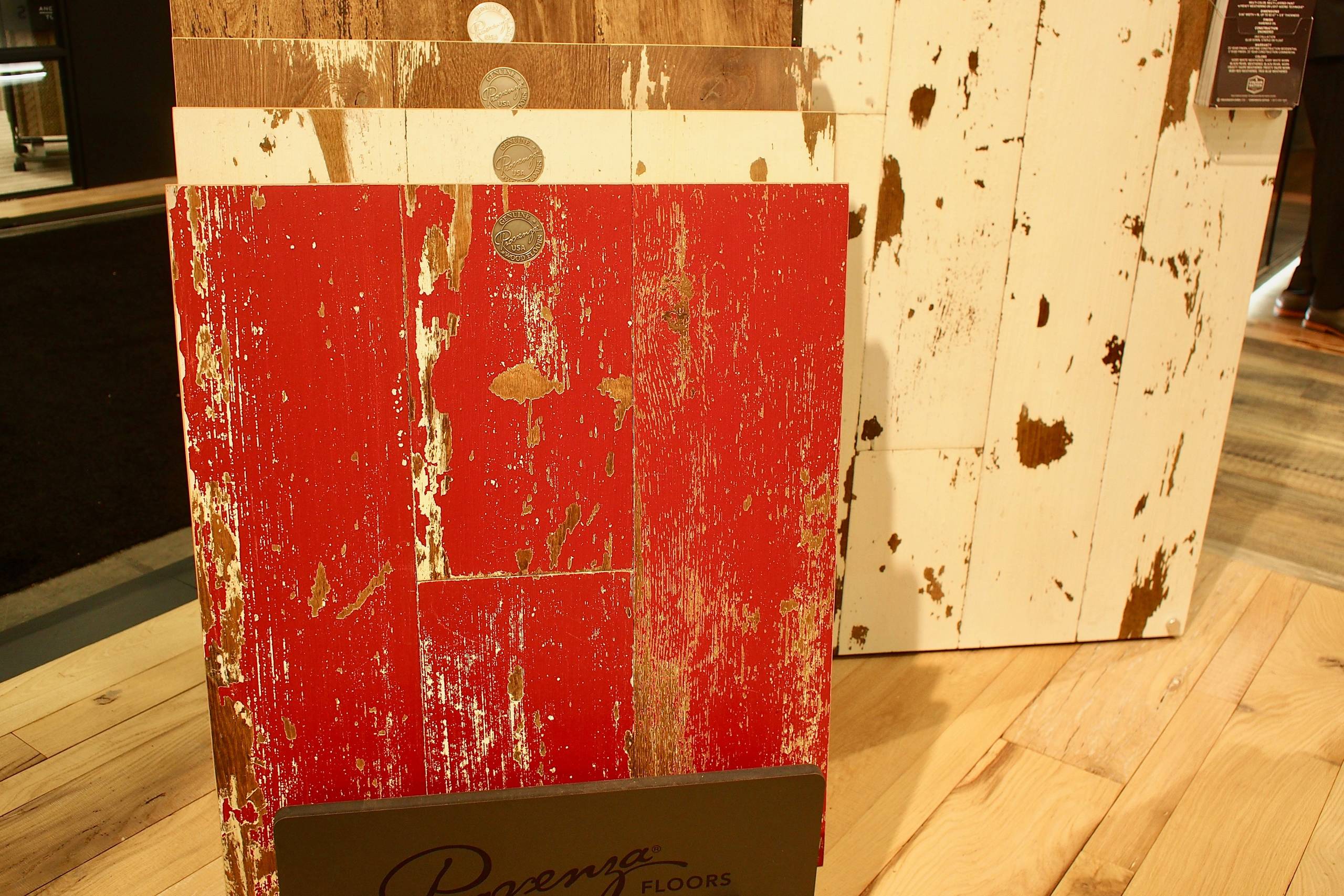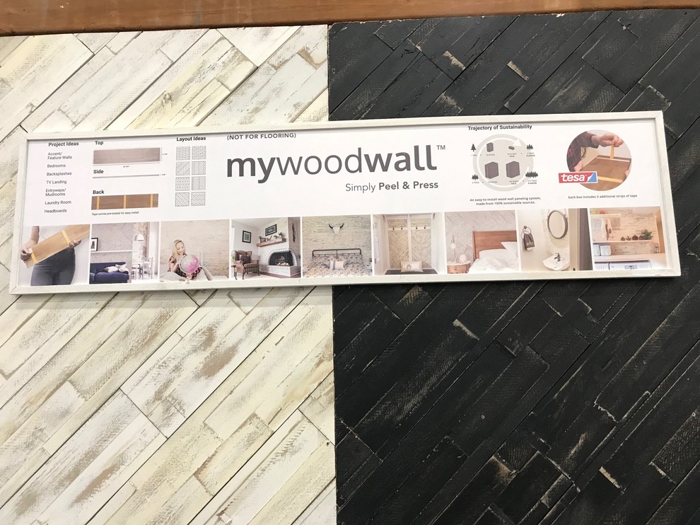 There were several peel-and-press wood-like vinyl tile exhibits, but Mywoodwall uses real wood planks. The company says it can be used on accent walls and backsplashes, in entryways and laundry rooms and even as a headboard.