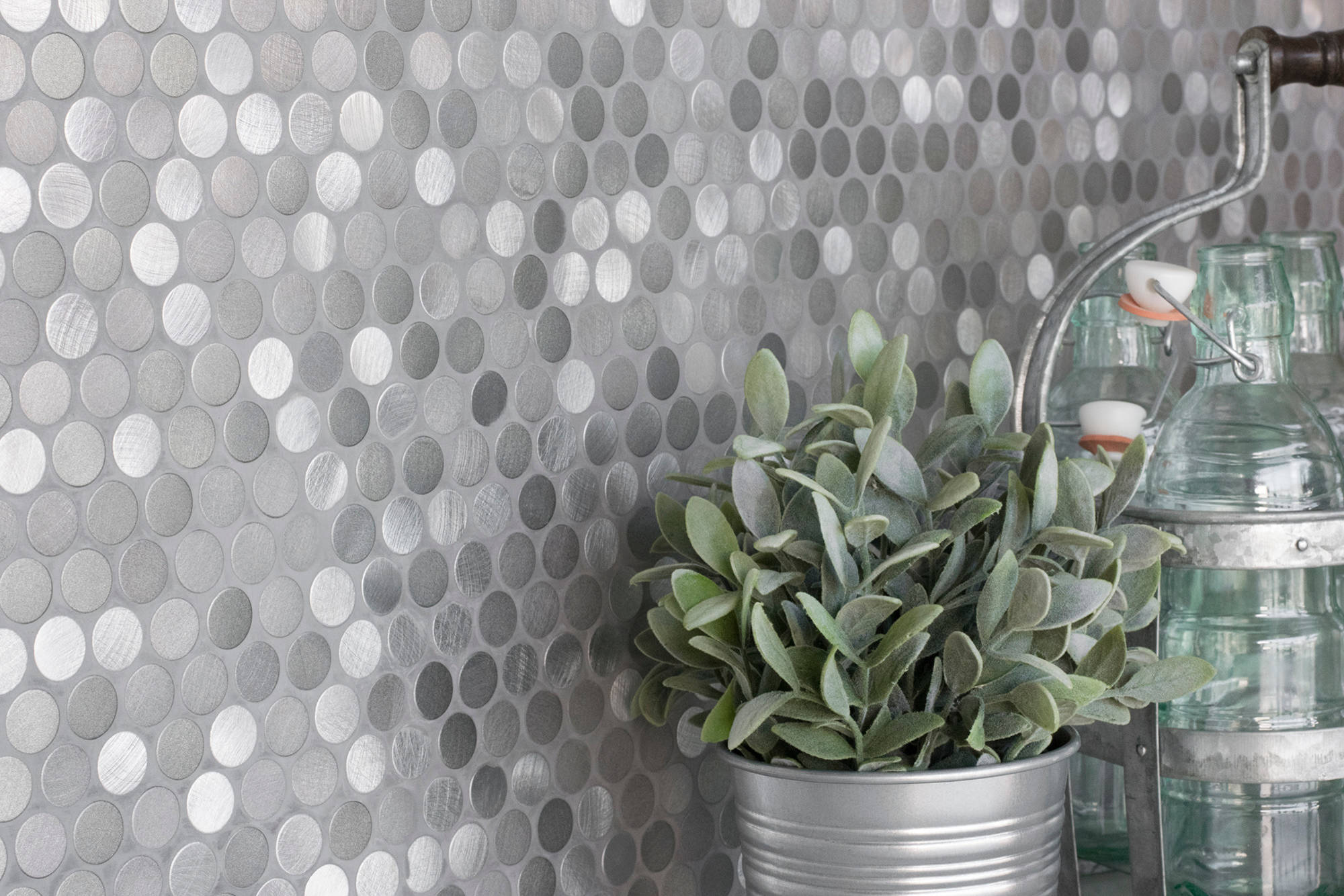 Bedrosians’ Montane tile, pictured, shows how metal, stone and glass can combine to form a striking surface.