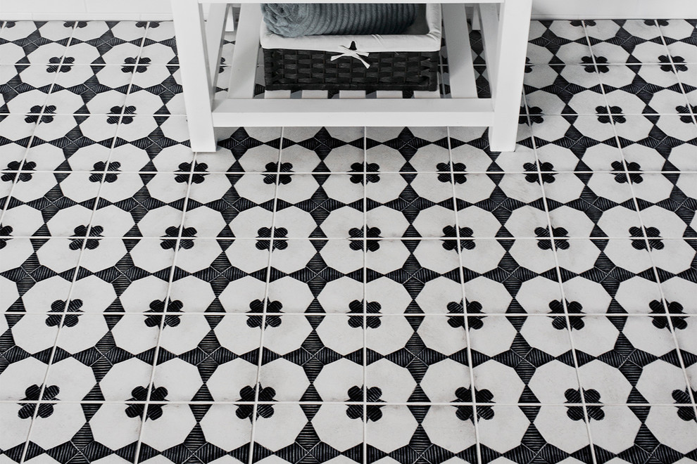 Encaustic cement tiles have been around for centuries, and over the past few years they have become popular for floors and walls. Today, the bold, graphic encaustic look is showing up in porcelain tiles as well, which tend to be more cost-efficient and easier to maintain than cement. The porcelain tile shown here is Enchante from Bedrosians Tile and Stone.