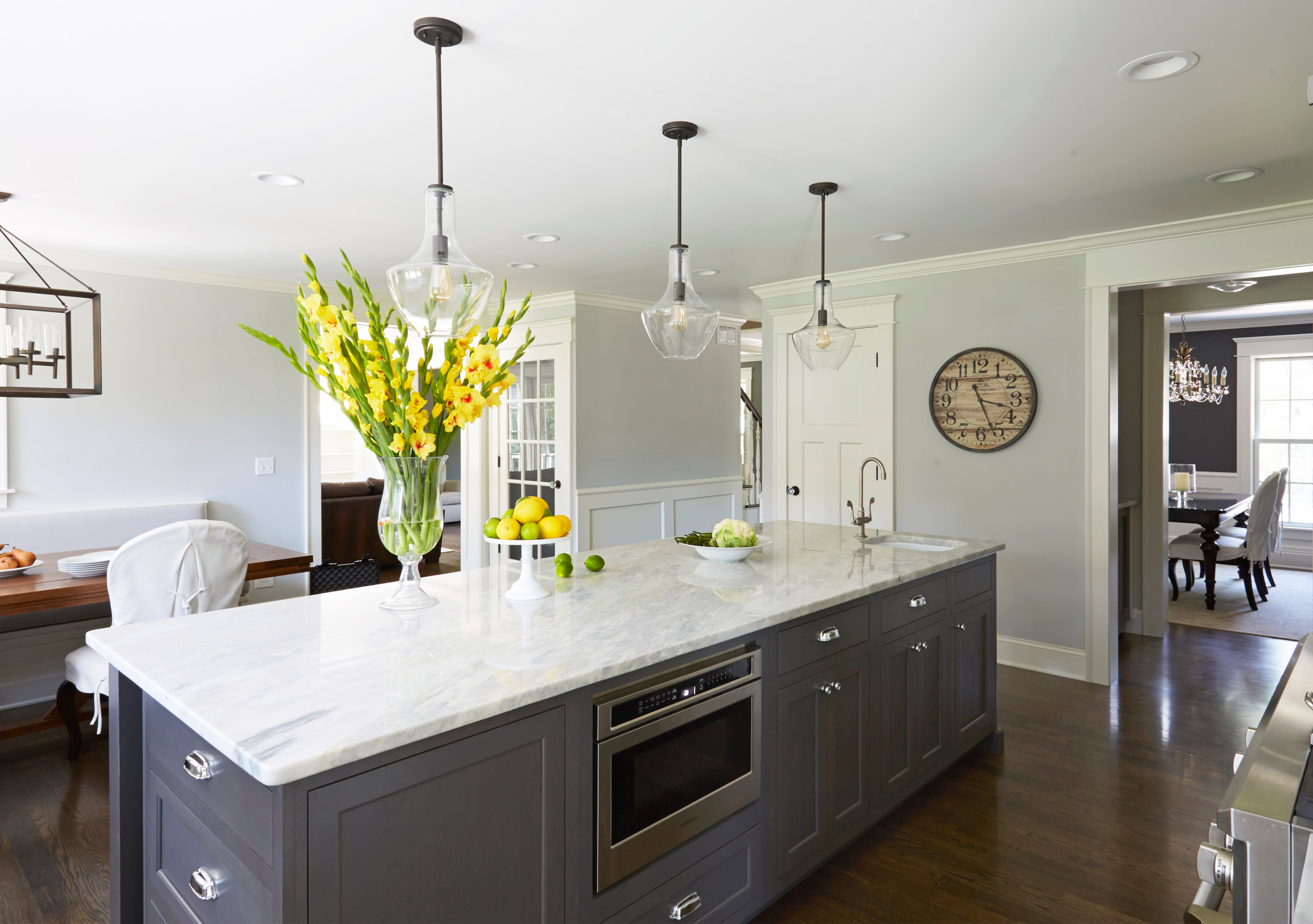 Among natural stone surfaces, quartzite is gaining in popularity. It’s good for countertops, says Amy Oakley of the National Stone Institute. “The great thing about quartzite is it comes in so many colors, so a lot of it looks like marble, but it’s much stronger.” Silverwater quartzite was used for the island countertop in this room designed by The Kitchen Studio of Glen Ellyn.