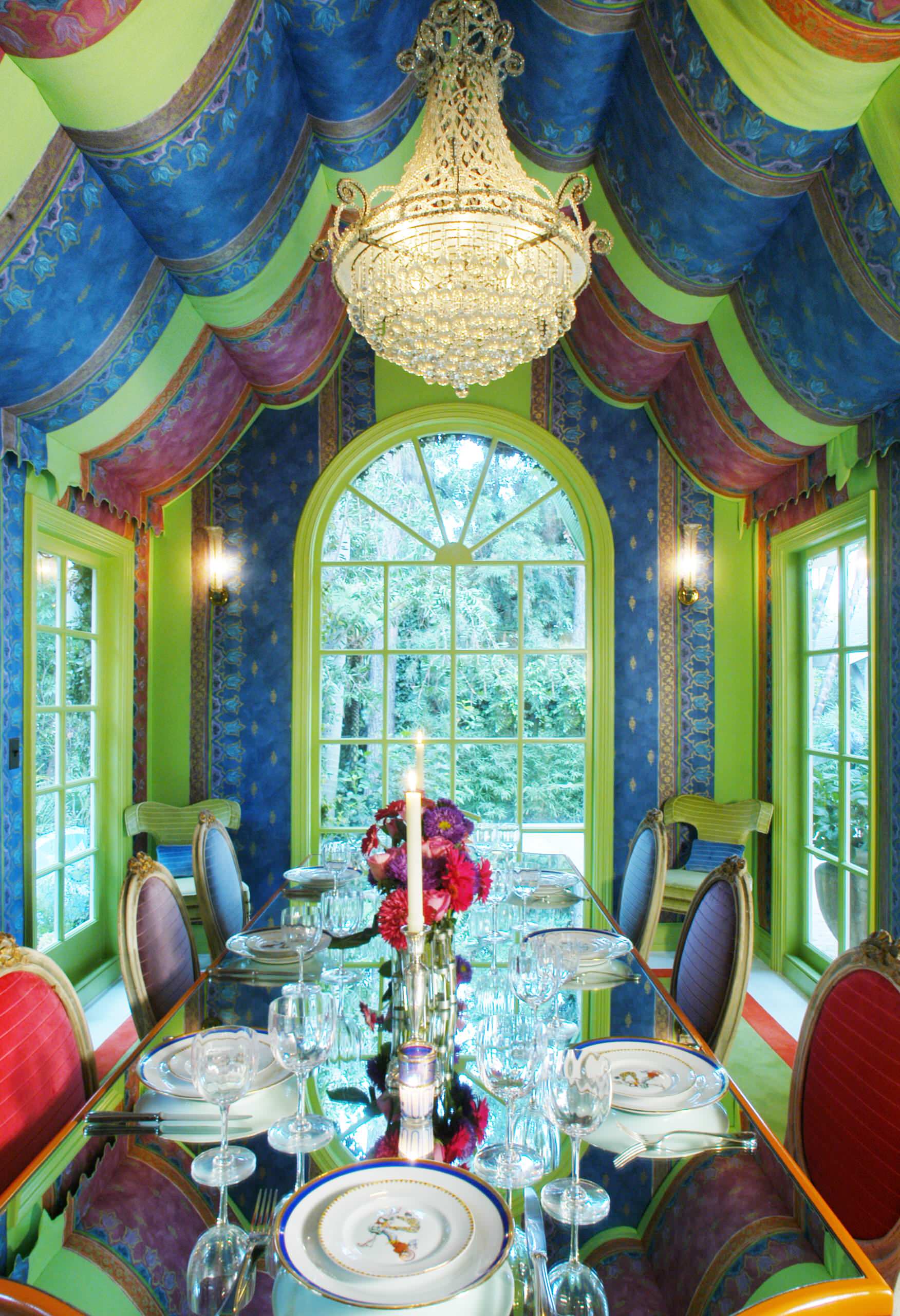 This dining room would be a dream come true for Mad Hatter. The drapery hanging from the ceiling almost makes the room feel surreal, while the chandelier adds some glamour.