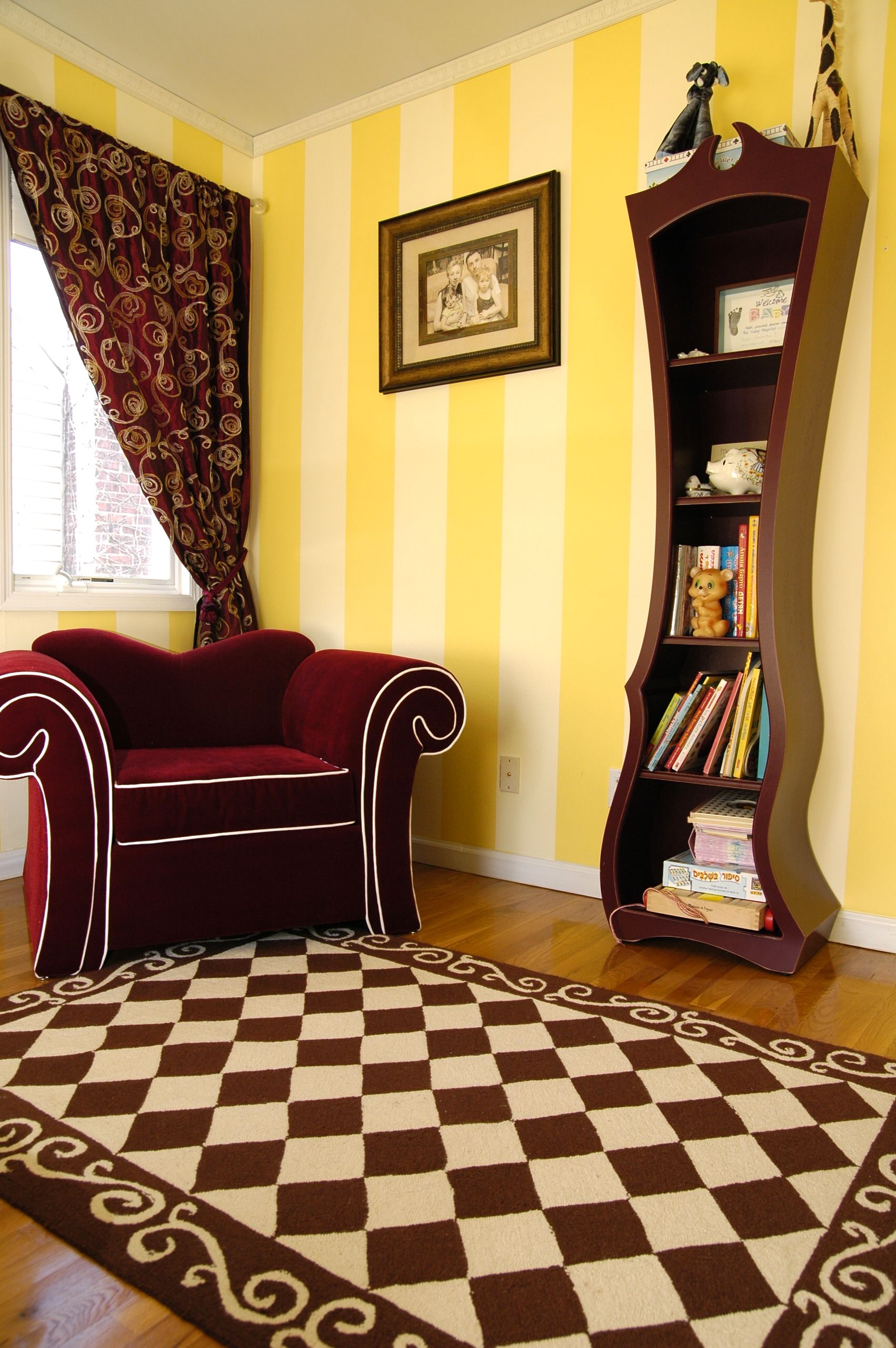 This Alice in Wonderland-inspired ‘big girl’s room’ makes you wonder if perhaps you’ve just drifted into a short sleep. But because everything else looks quite normal … maybe the wonky bookshelf is a figment of your imagination?
