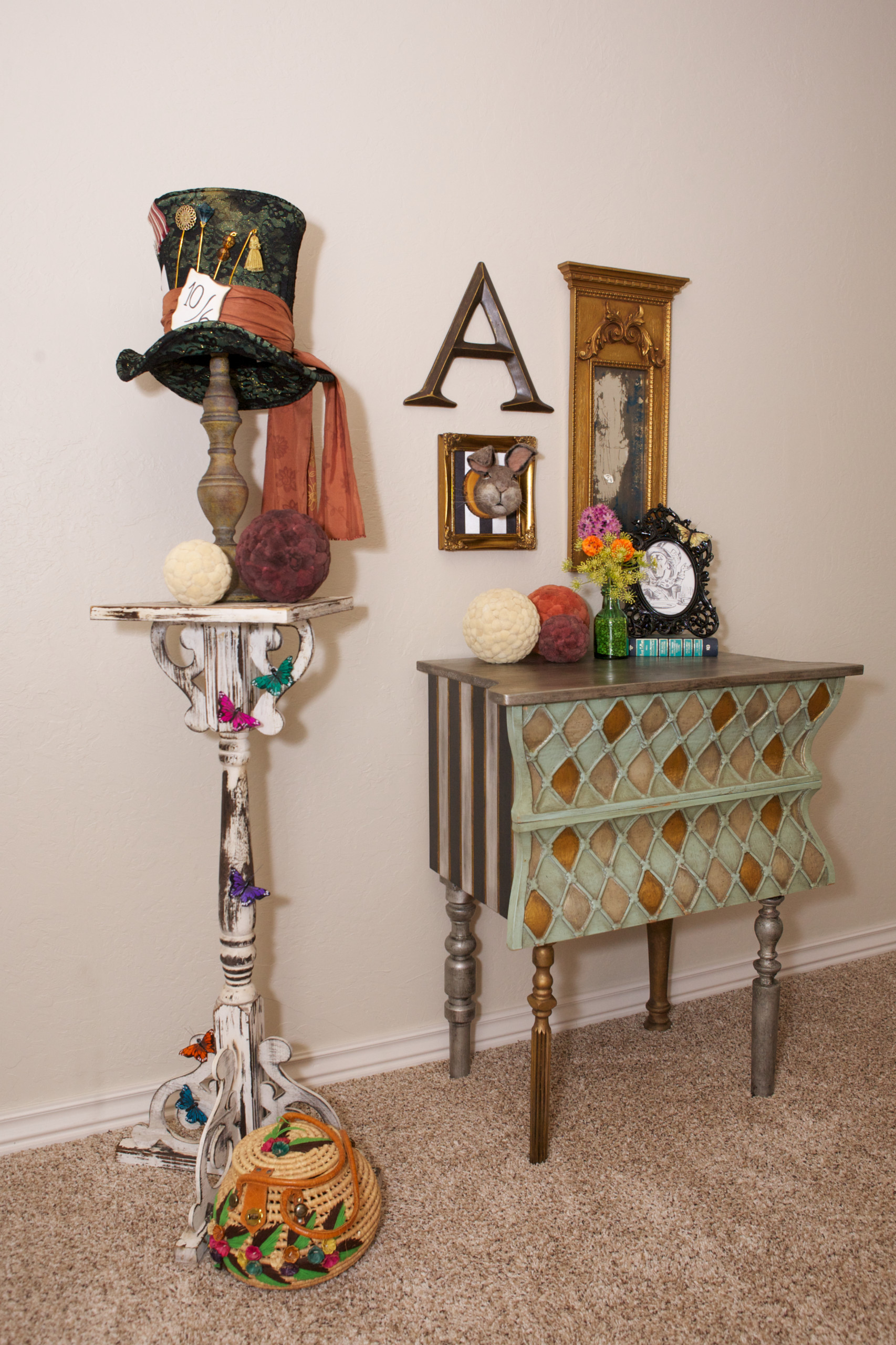 This ode to the Mad Hatter is an unexpected display to find in a bedroom corner. But in the words of Alice in response to Hatter’s concern he’s gone mad, “You’re entirely bonkers. But I’ll tell you a secret. All the best people are.”