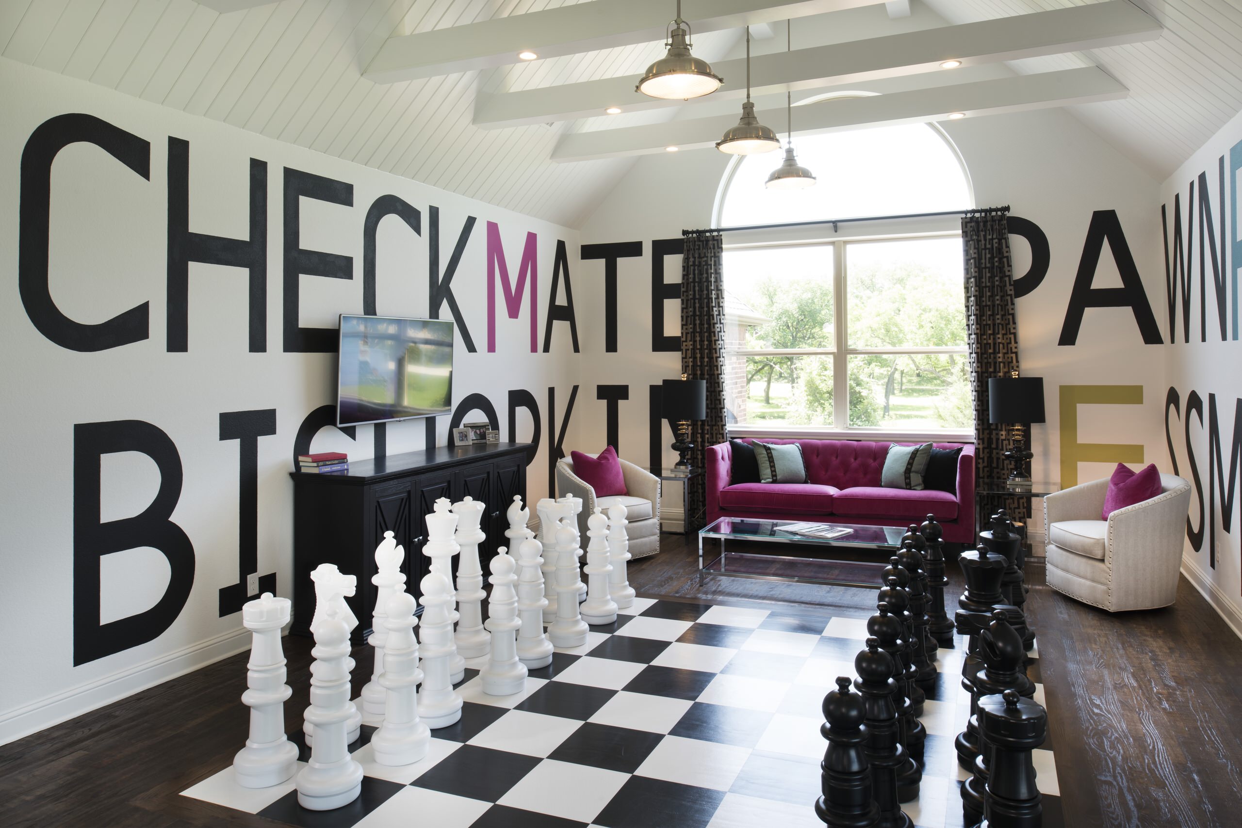 This room is a representation of a modernised Queen of Hearts, who it seems has become a little more in touch with her playful side. The splashes of red, white and black allude to a deck of playing cards – the Queen of Hearts’ main guards.