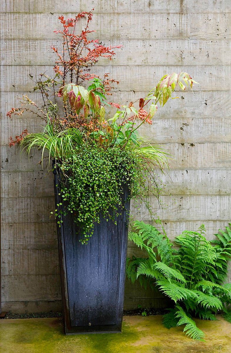 This distinctly Asian-flavor planting illustrates that the formula works in any design style. Try: