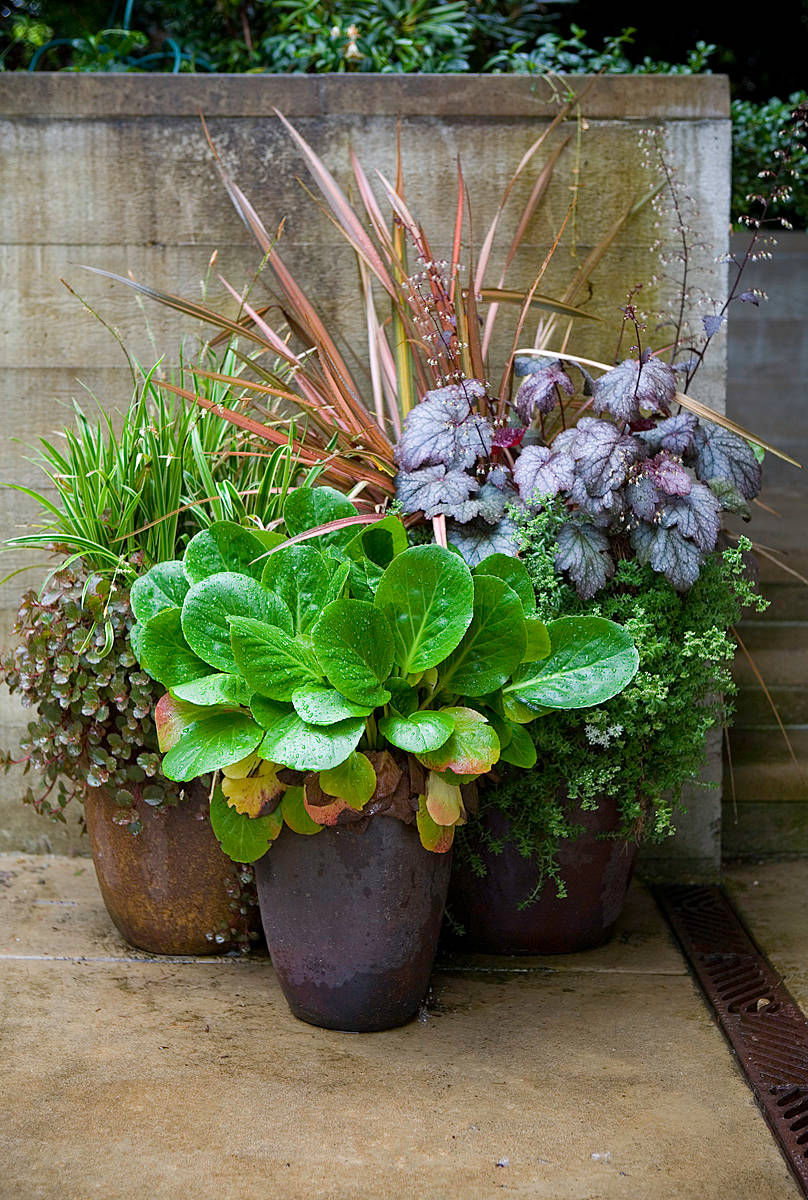 Texture, form and contrasting foliage color enhance the composition. Try: