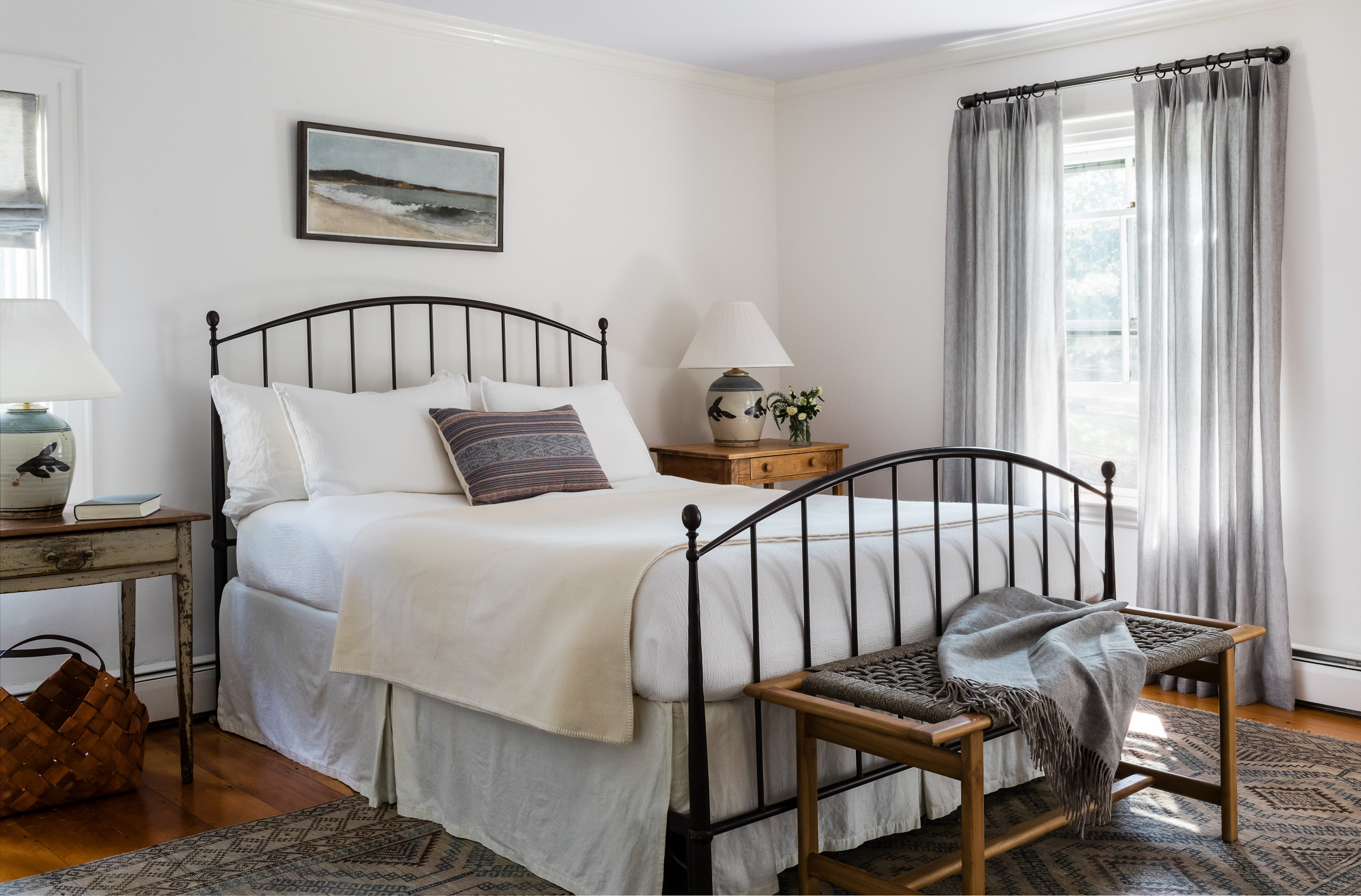The most-saved bedroom photo so far in 2022 also comes from coastal Massachusetts. But this Manchester-by-the-Sea bedroom by Henley Design leans more farmhouse than beach house. Crockery-style lamps, weathered wood nightstands and an iron bed frame create a welcoming old-world feel. A walnut bench, Southwestern-style rug and woven leather storage basket add an eclectic vibe.