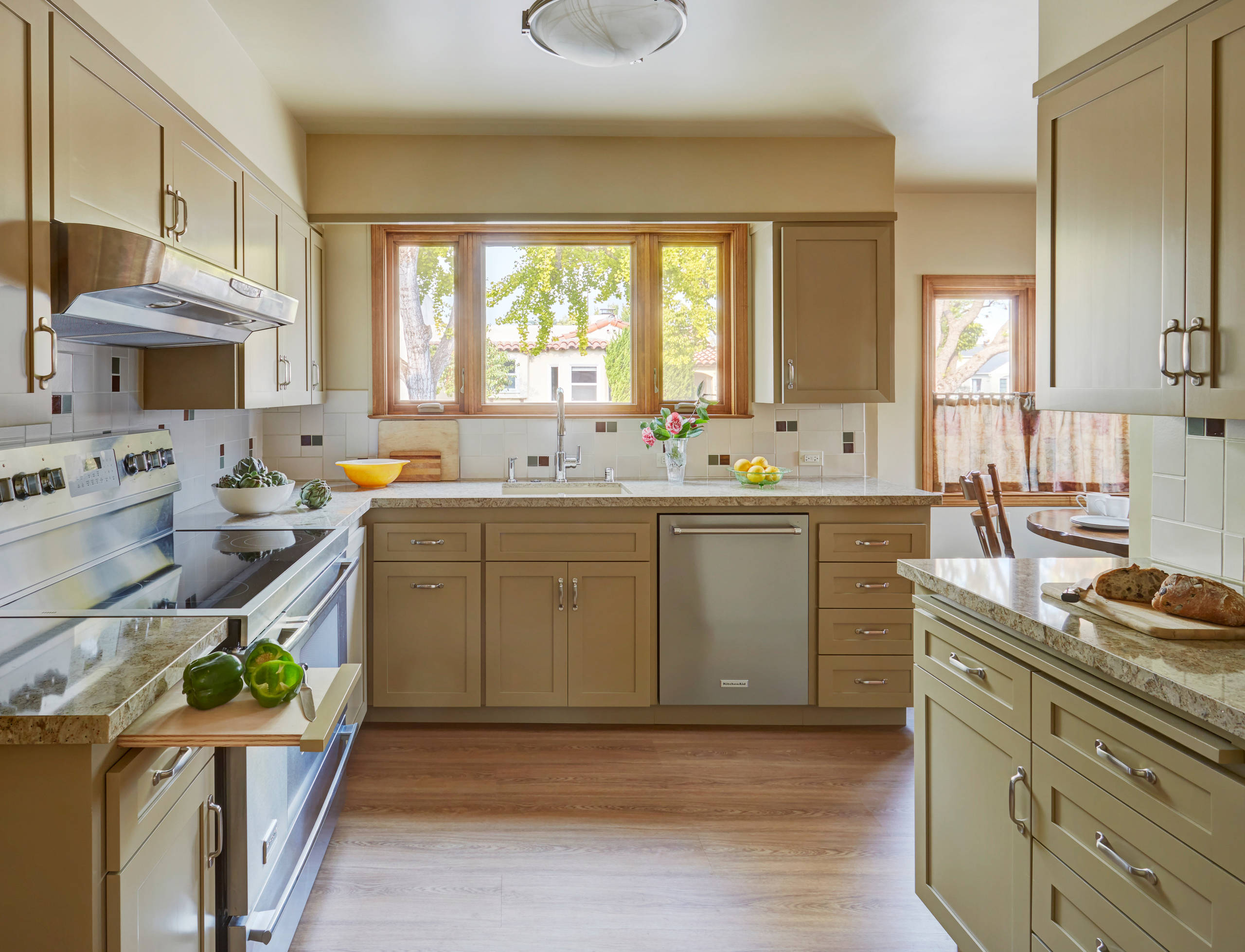 This kitchen features Shaker-style cabinets, the most popular choice for upgraded cabinets in remodeled kitchens.