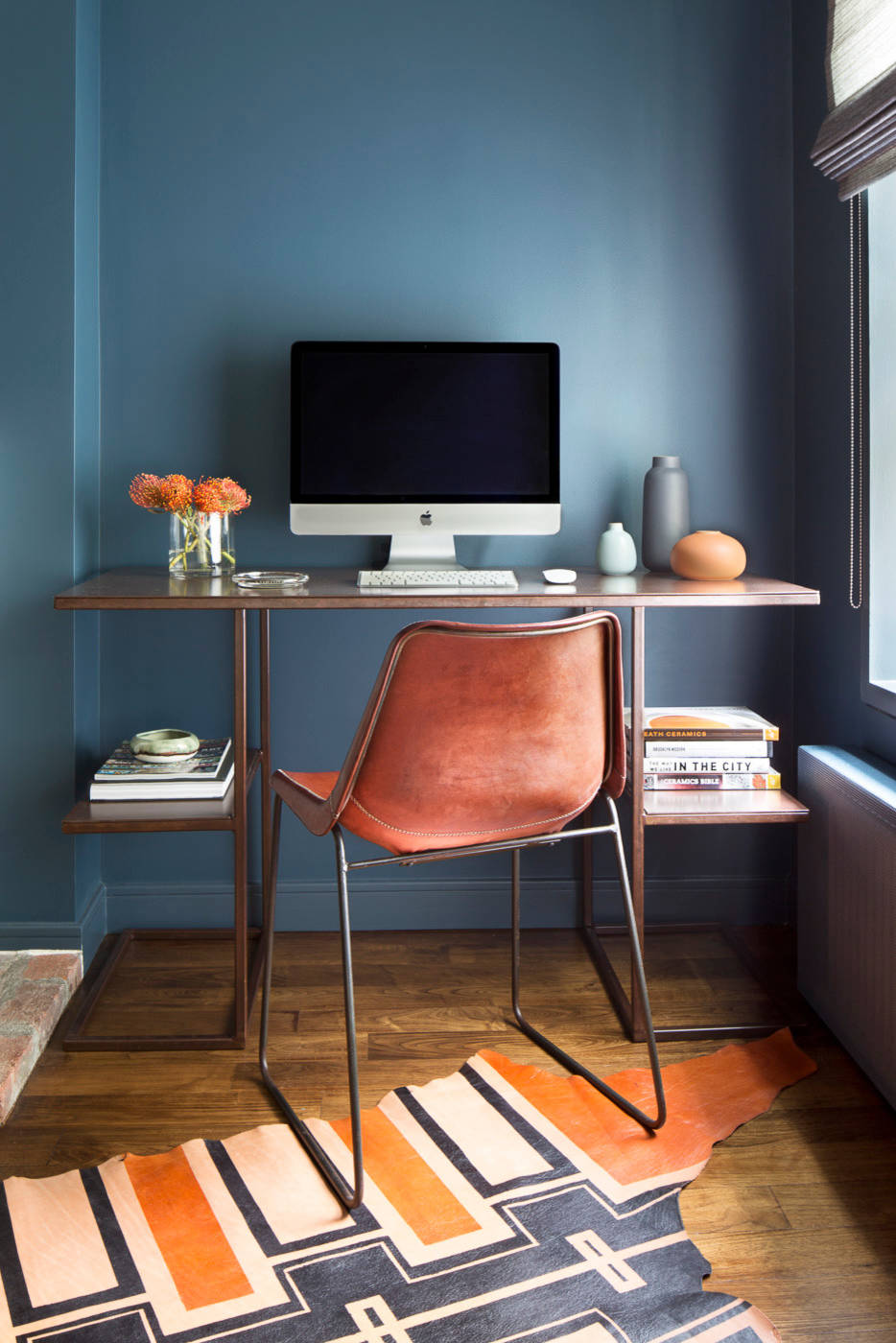 A sunny spot on New York’s Upper East Side needs little more than a slim-legged leather chair and minimalist desk space to get the job done.