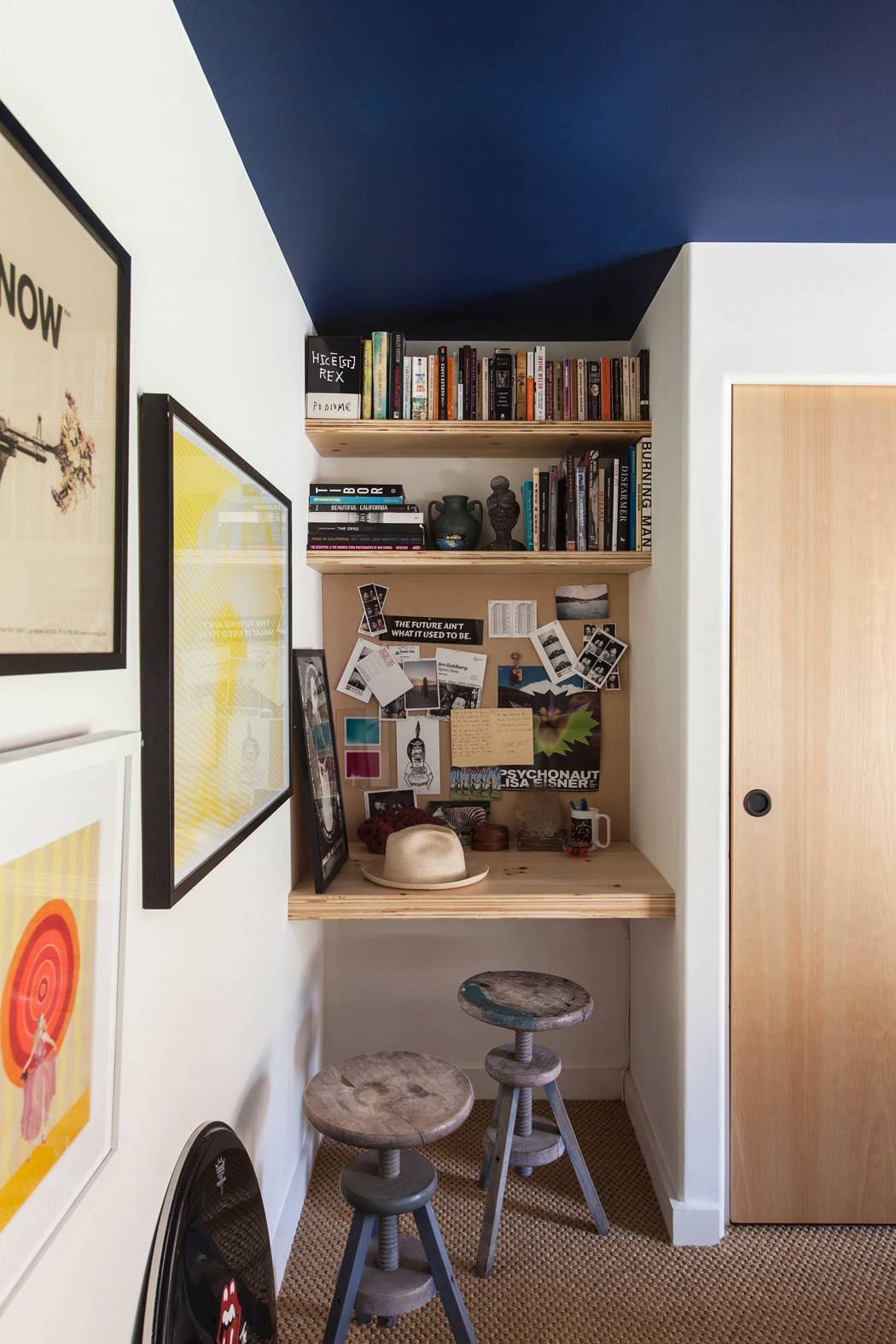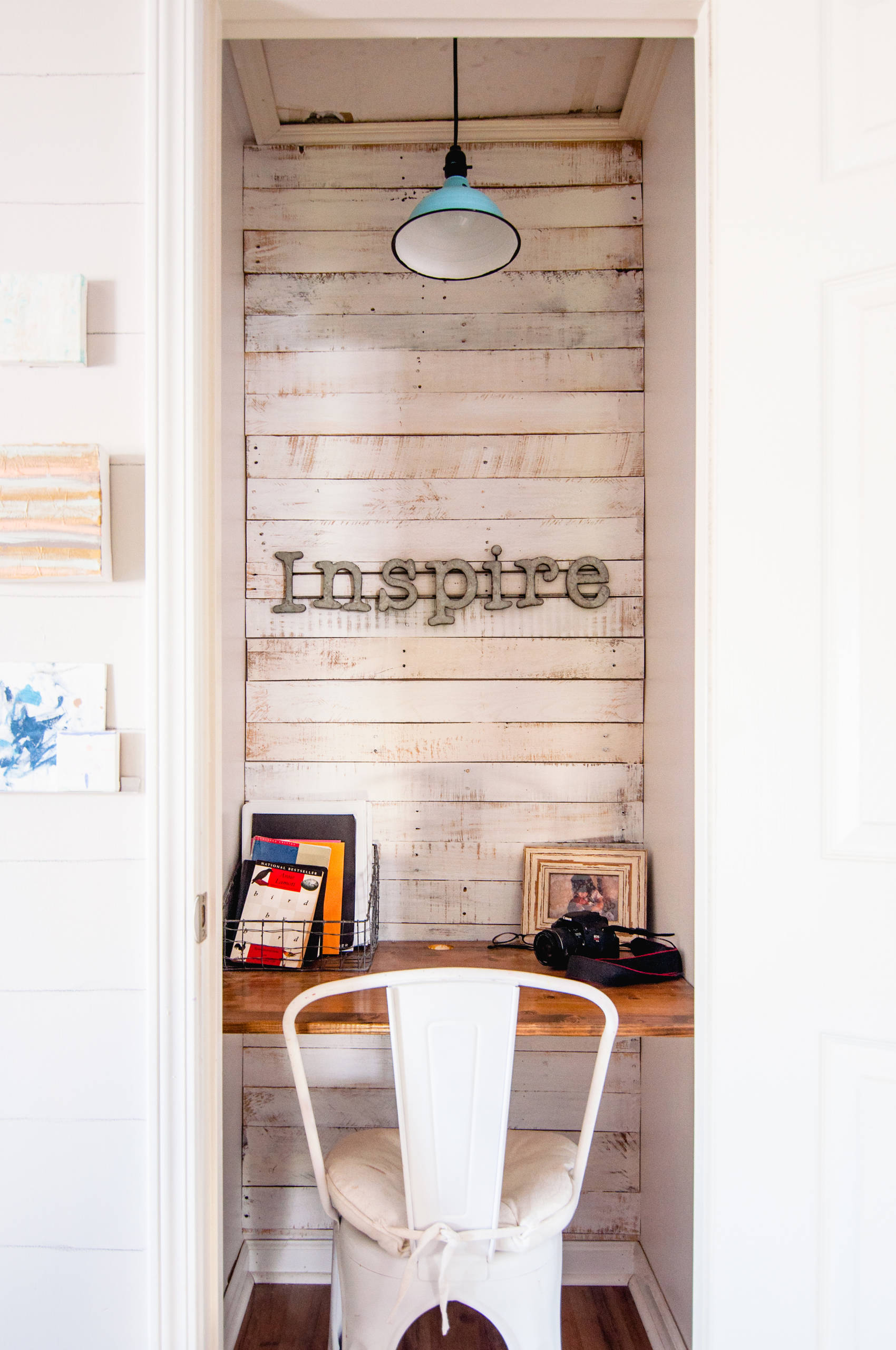 In the same home as the previously mentioned family art studio, homeowner Amanda Hervey also carved out a more private, miniature space in which she can work, read and write posts for her blog, Our Storied Home.