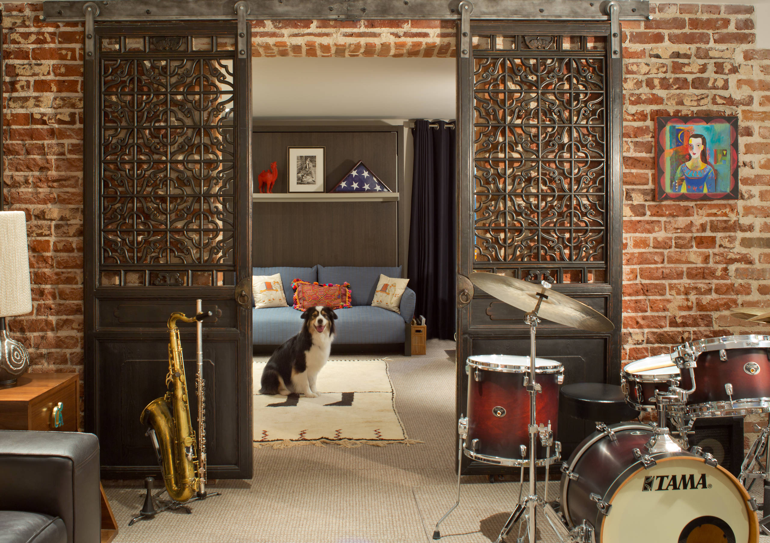 1. Jazzing it up. Brick walls and latticework doors create a textural contrast in a basement for making music. Who wouldn’t like to kick back on that blue couch and listen for a while? This was the most popular new basement photo uploaded onto Houzz from April through June this year.