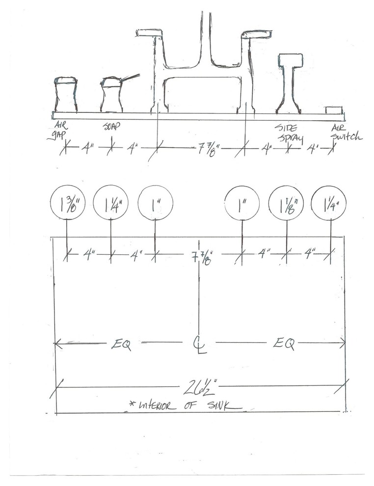 No surprises! The faucet and accessories look just like the layout sketched out in the prior image.