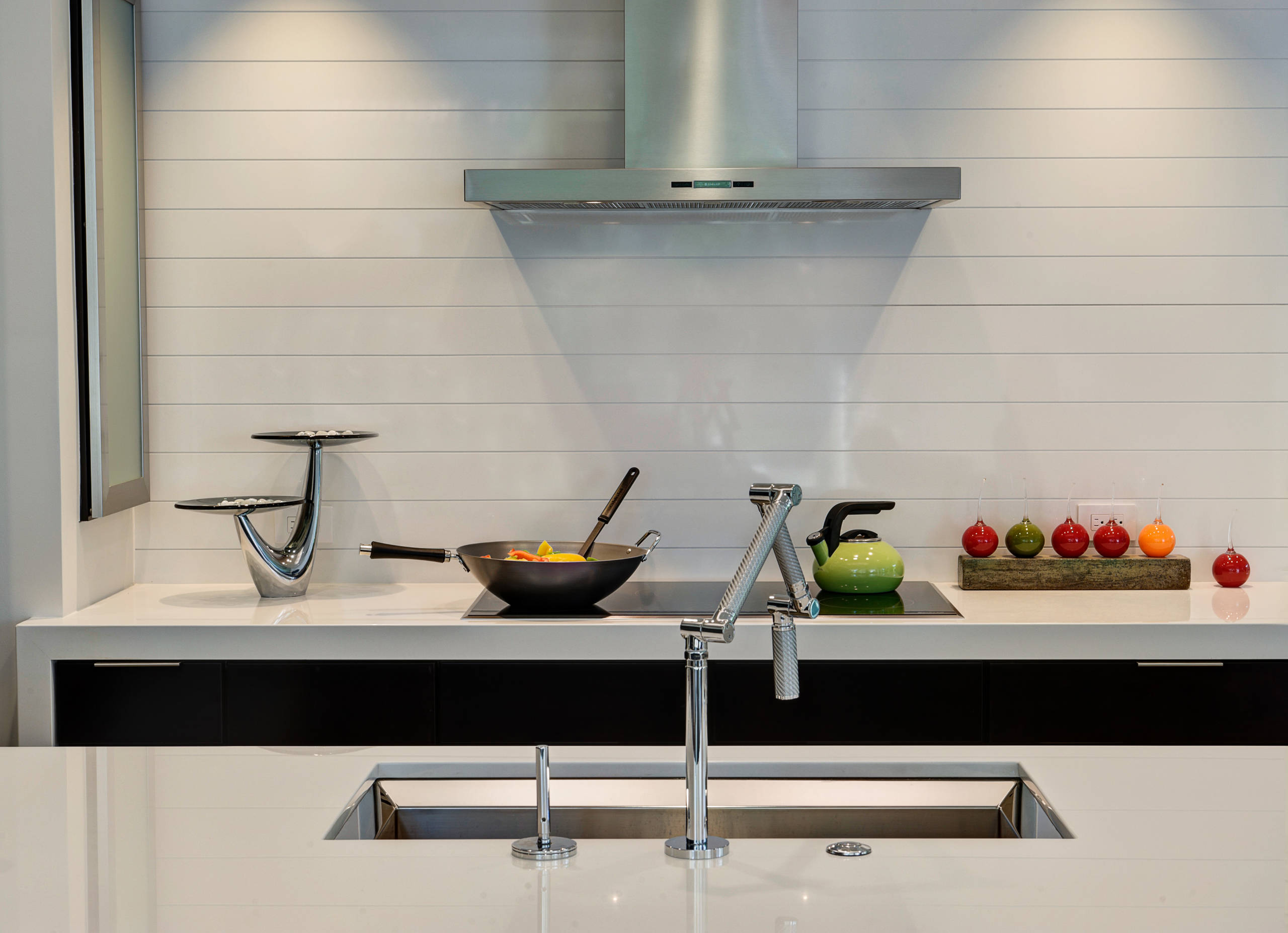 Wild card. Though these examples show a few common layouts, there’s not one single way to tackle this aspect of your kitchen design. My best advice for spacing your faucets and accessories is to not overcrowd them — especially since some accessories, such as a combination hot and cold water dispenser, have a large footprint.