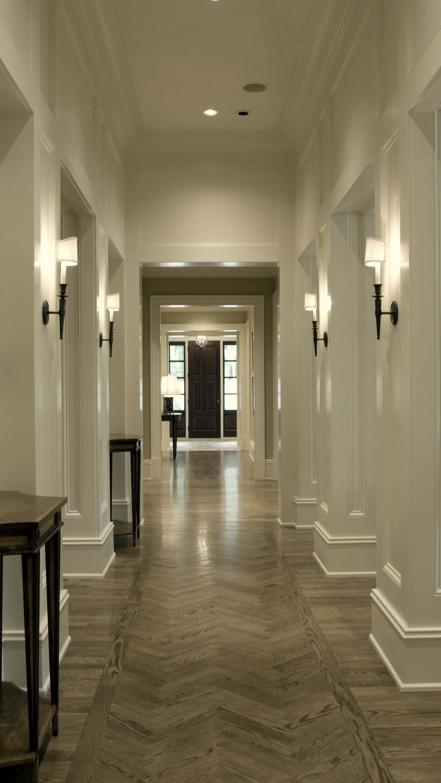 Creating a focal point at the end of a long hallway can help an individual of any age to gauge distance and offers a cue to an upcoming transition. Lighting that focal point increases the visual cueing and adds another lighting layer for ambience.
