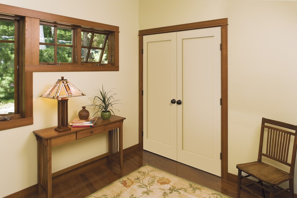 One more variation in Craftsman architecture is the five-panel door. You can find these with hollow cores and in solid wood.