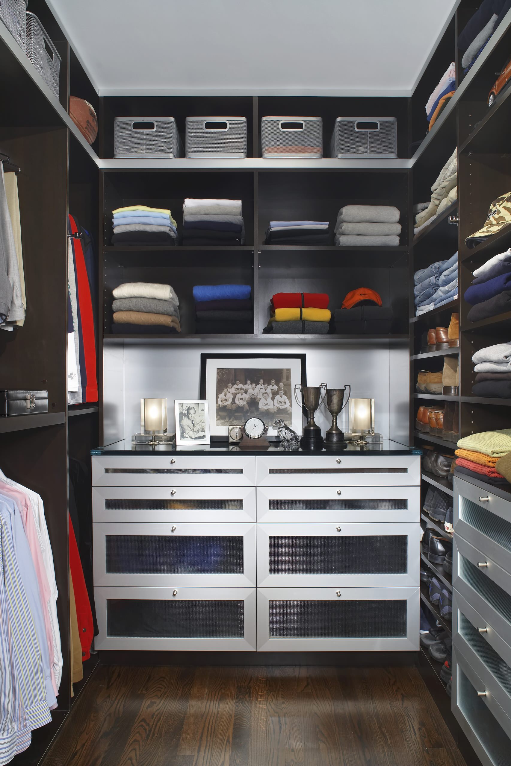 Drench your wardrobe. Black shelves lend an orderly feel to a walk-in wardrobe, and colored clothes stand out clearly against them, making it easier to find what you want to wear. Good lighting is key to the success of a dark dressing space, so think through where to include lights when you’re designing it.