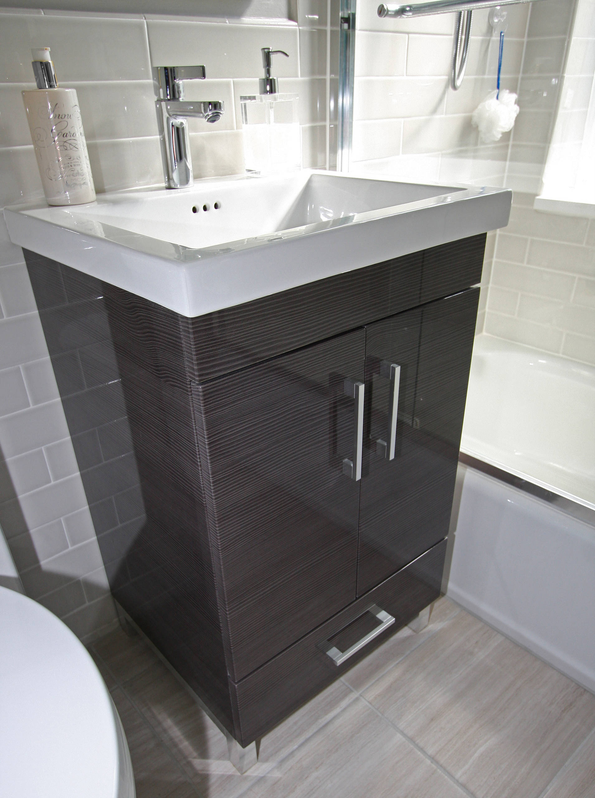 She decided to design her new bathroom herself, sourcing all the tile, fixtures and finishes, a task that proved immensely challenging. She scoured local showrooms in search of small sinks, vanities, toilets and more. She played a game of inches, mapping out every decision carefully to get the most storage and counter space in her bathroom.