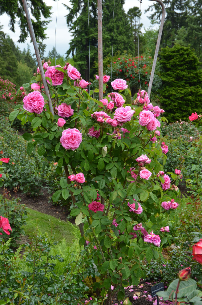 ‘Altissimo’, ‘New Dawn’ and ‘Sally Holmes’ are often planted where climbing roses are desired.