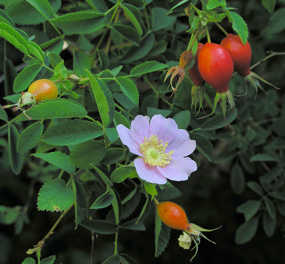 California wild rose (Rosa californica) with rose hips; photo by PKM