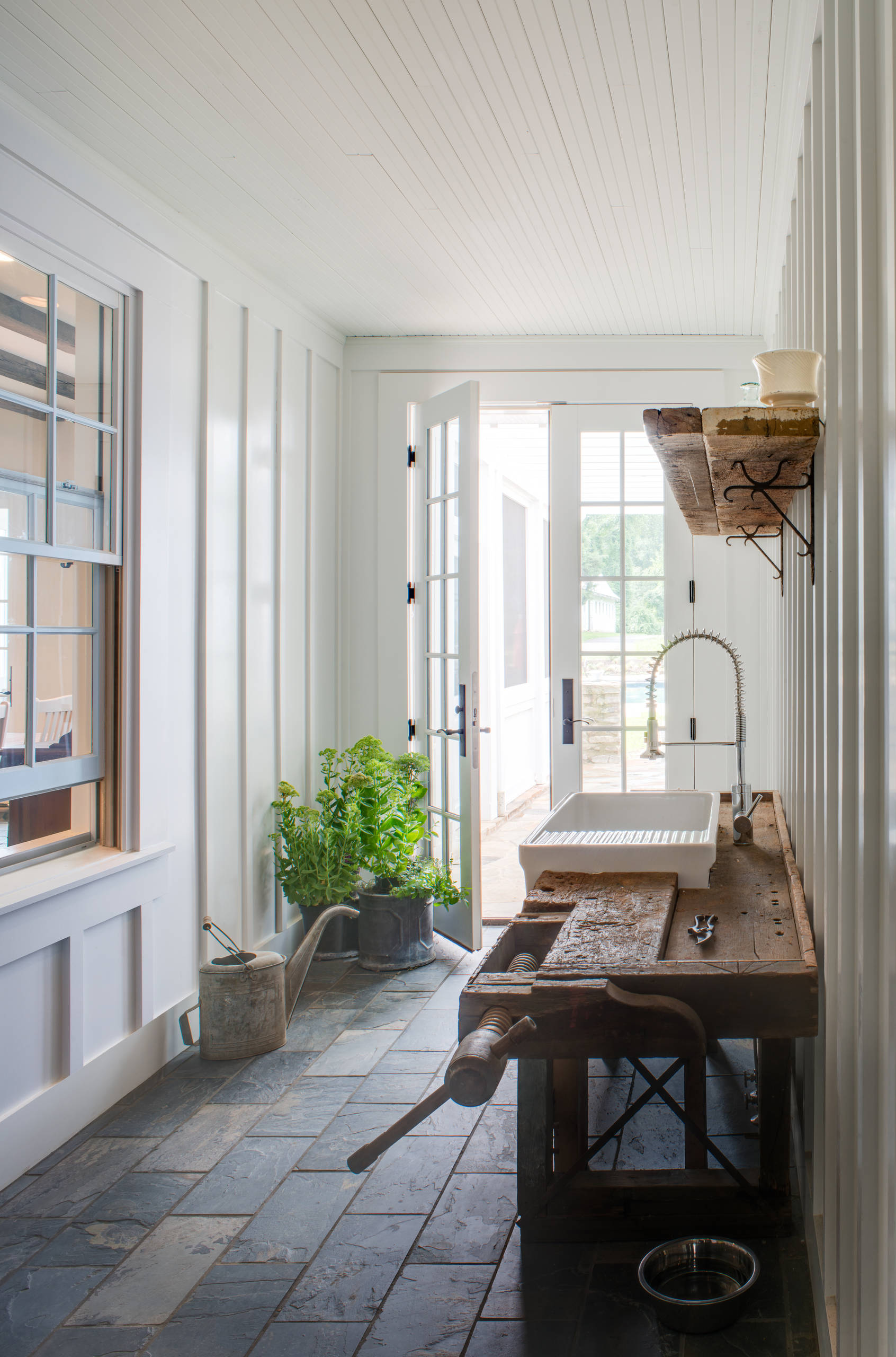 Water-free option. You may want to consider adding a sink that’s not connected to a water source at all. This can make sense if you’re primarily using your outdoor sink as a basin for repotting, cleaning tools and arranging flowers.