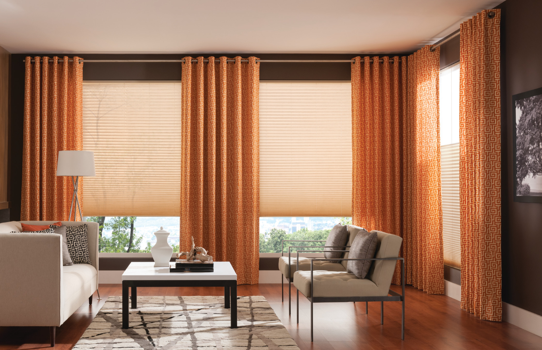 Here are grommet drapes paired with top-down/bottom-up cellular shades.