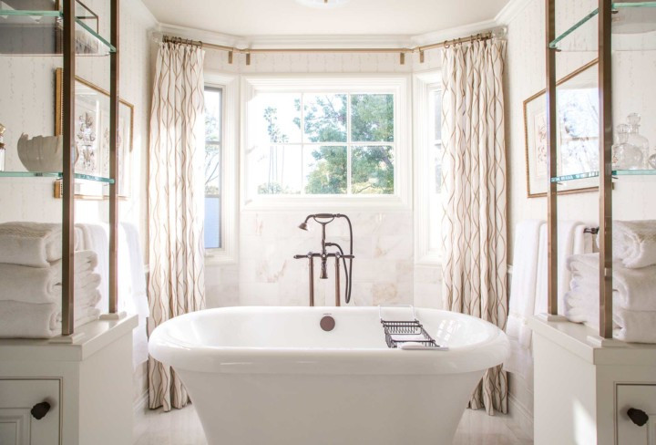 Curtains and drapes on their own can be a room’s standout feature, and when paired with other window treatments like shades and blinds, they’re like the final accessory that makes an outfit perfect. “Adding [drapery] panels to any space helps bring that extra layer of elegance,” says designer Amy Peltier, who gave this primary bathroom in South Pasadena, California, that elegant layer.