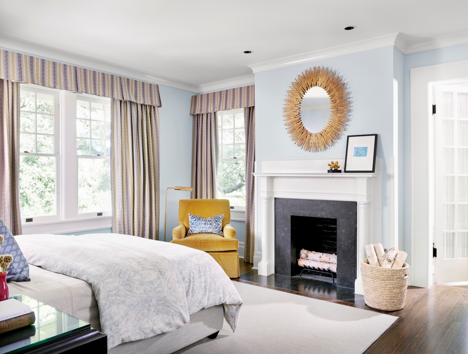 “We wanted to follow a traditional application by adding a valance to honor the period of the home,” Ashby designer Anne Grandinetti says. “These are custom-made window treatments from our in-house workroom.”