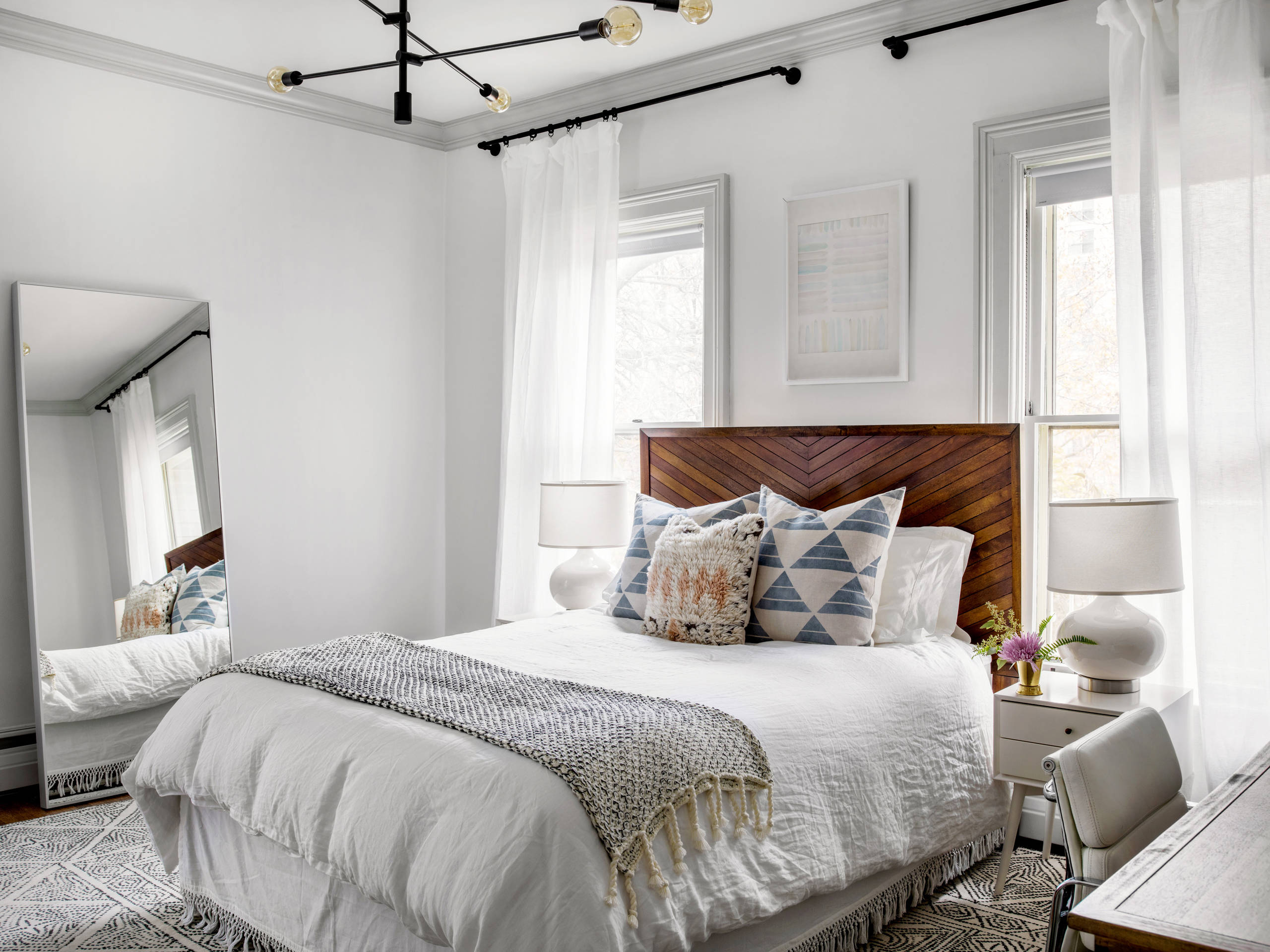 The patterned valance shown here matches the drapery in one of the bedrooms of a 1920s house in Austin, Texas, that was remodeled and updated with the help of the pros at Ashby Collective.