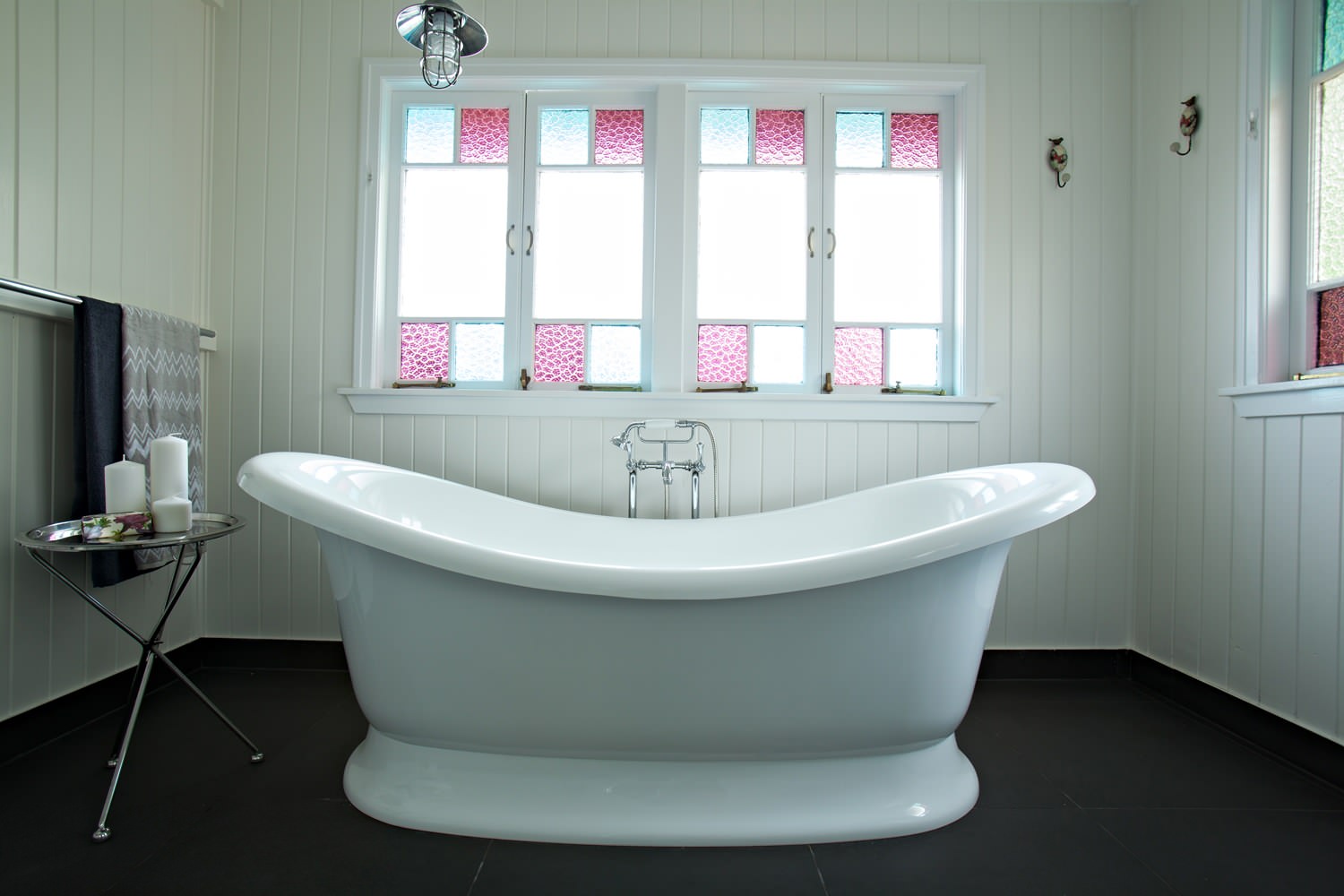 The bathroom can be a tiny corner of heaven when there’s less in it competing for attention. Spend a few minutes before bathtime putting away everything but fresh towels and a table or ledge to hold lotions and potions, and let your mind float to nice things while you soak or shower away the day.