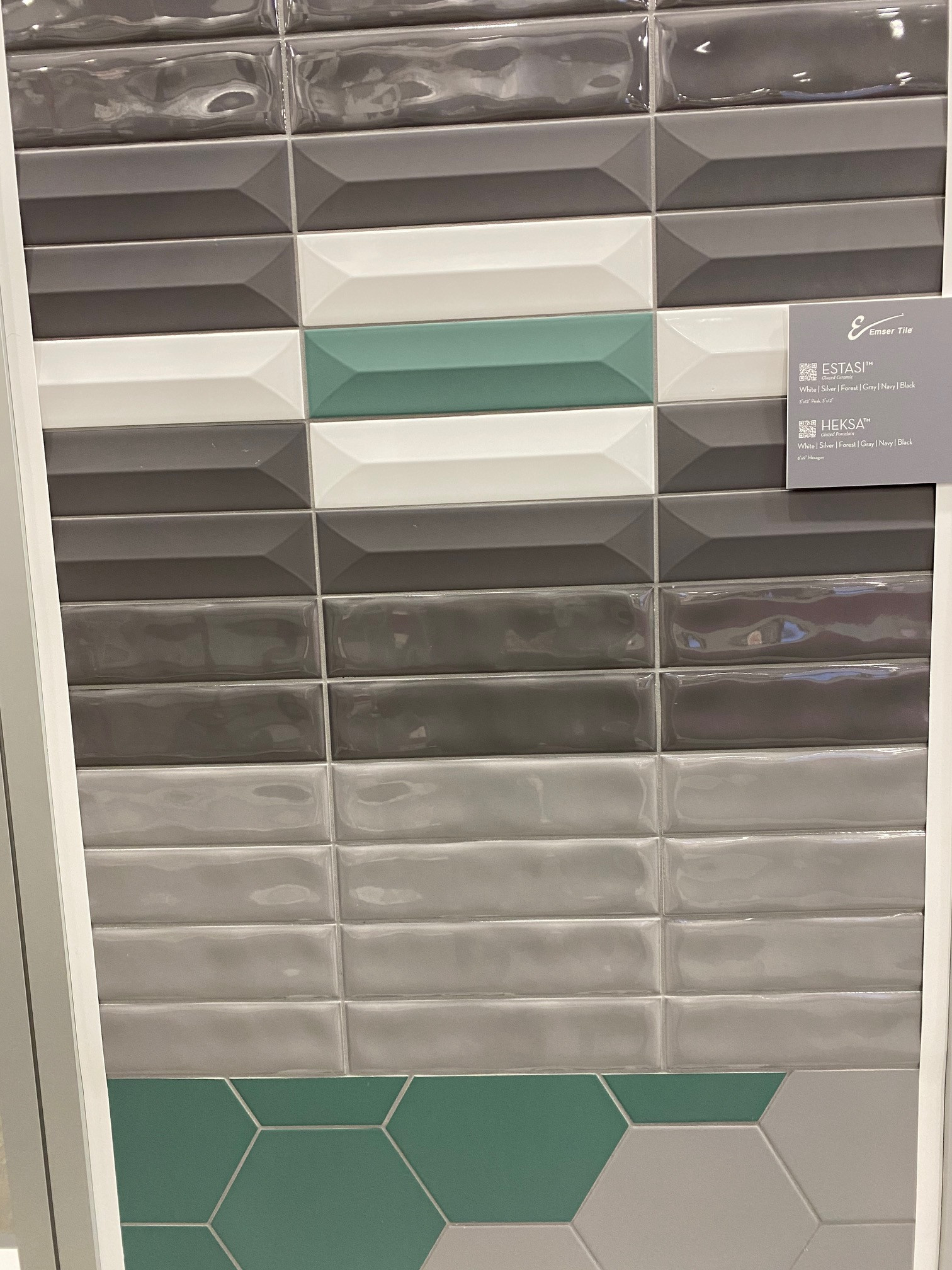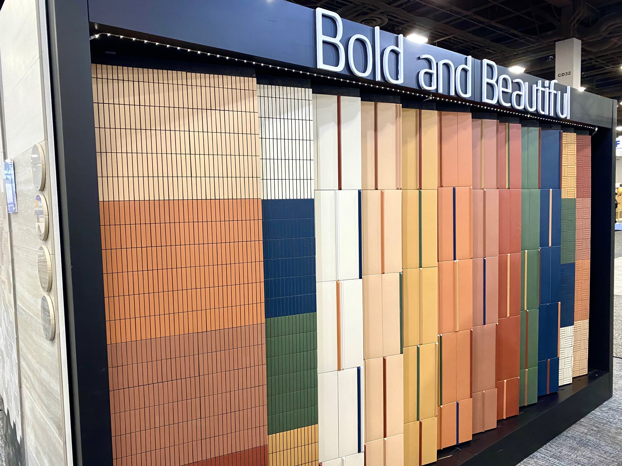 Many tile displays at TISE included multiple neutral and bold colors — as well as shapes and textures — within the same collection. “We’re really focusing on introducing more color, a very popular trend, but also having full collections of tiles that coordinate with one other, kind of making the design side of it easier,” says Kathy Greene of Emser Tile.