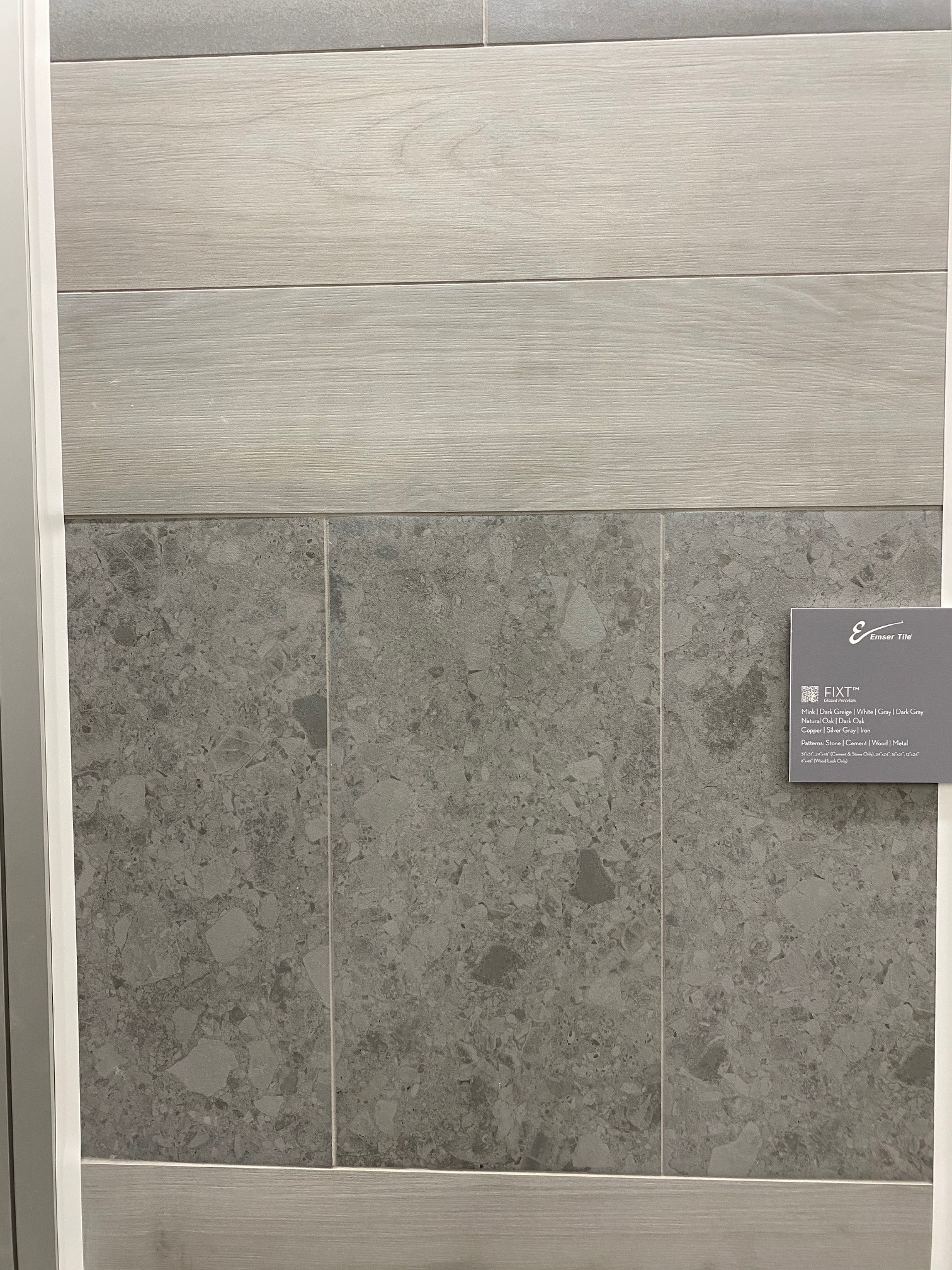 Emser’s new Fixt line, pictured, is part of the Enhance collection of porcelain tile mimicking wood, stone, cement and metal in various shades and sizes, all meant to be mixed and matched.