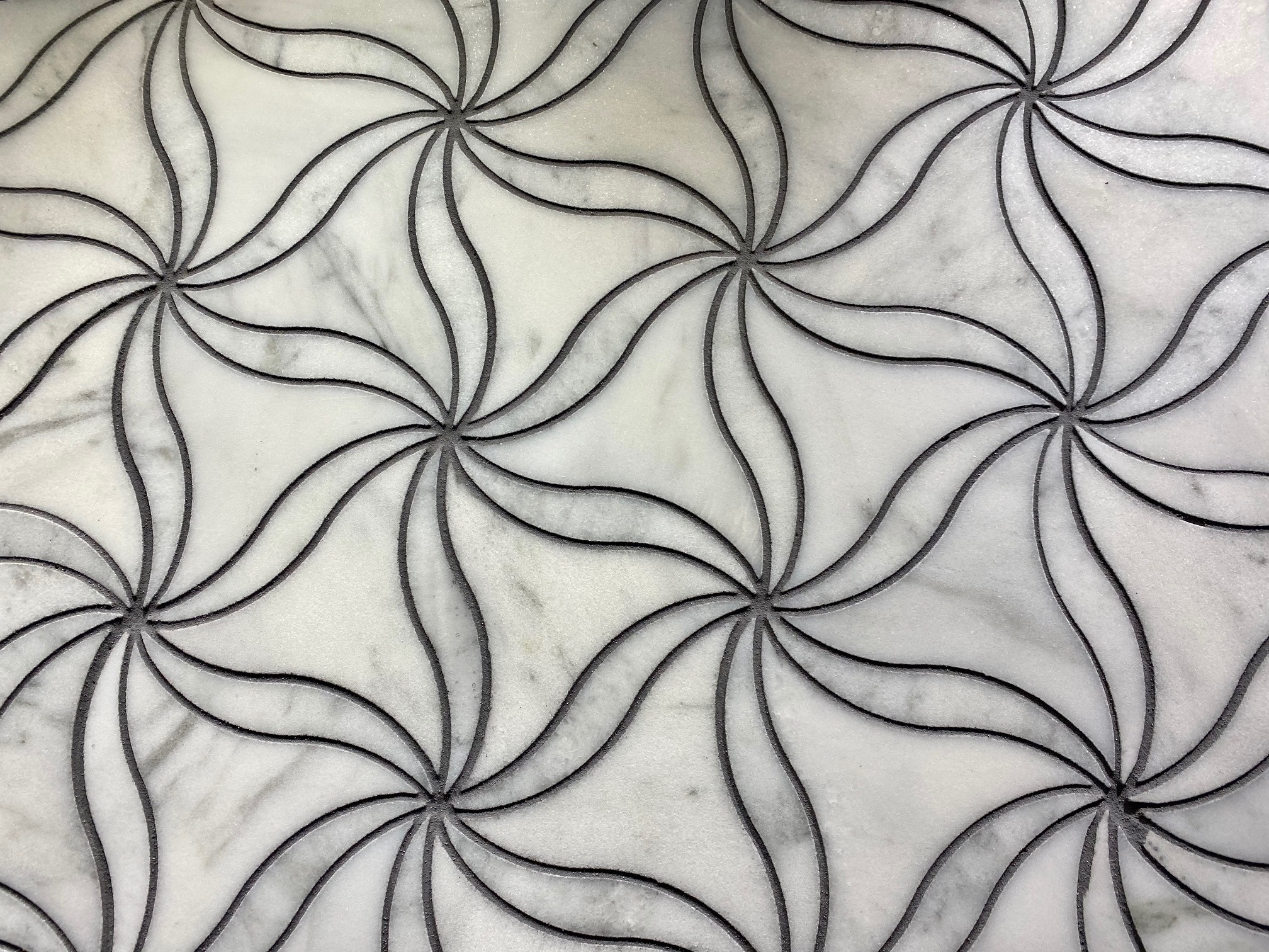 This swirly flower pattern appropriately called Petal is marble and is one of Arizona Tile’s new stone mesh tiles.