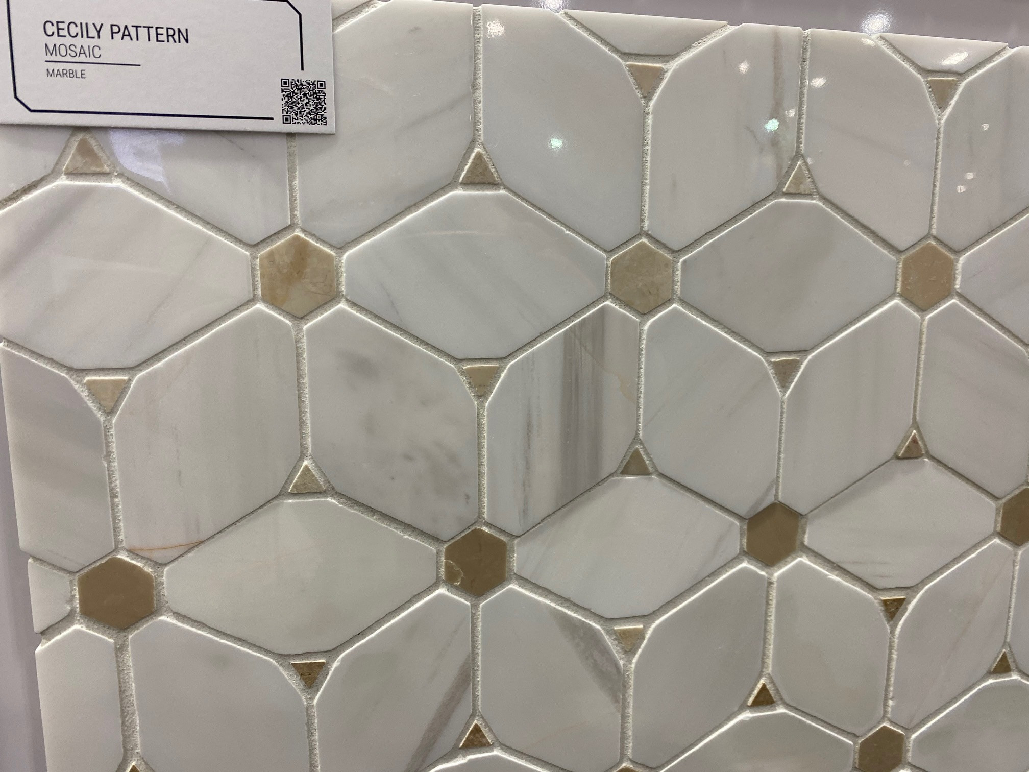 Speaking of flowers, MSI displayed the fresh Cecily pattern tile from its Bianco Dolomite collection of natural marble in creamy whites, beiges and light grays. The collection includes 13 other unique patterns and a 12-by-24-inch floor tile.