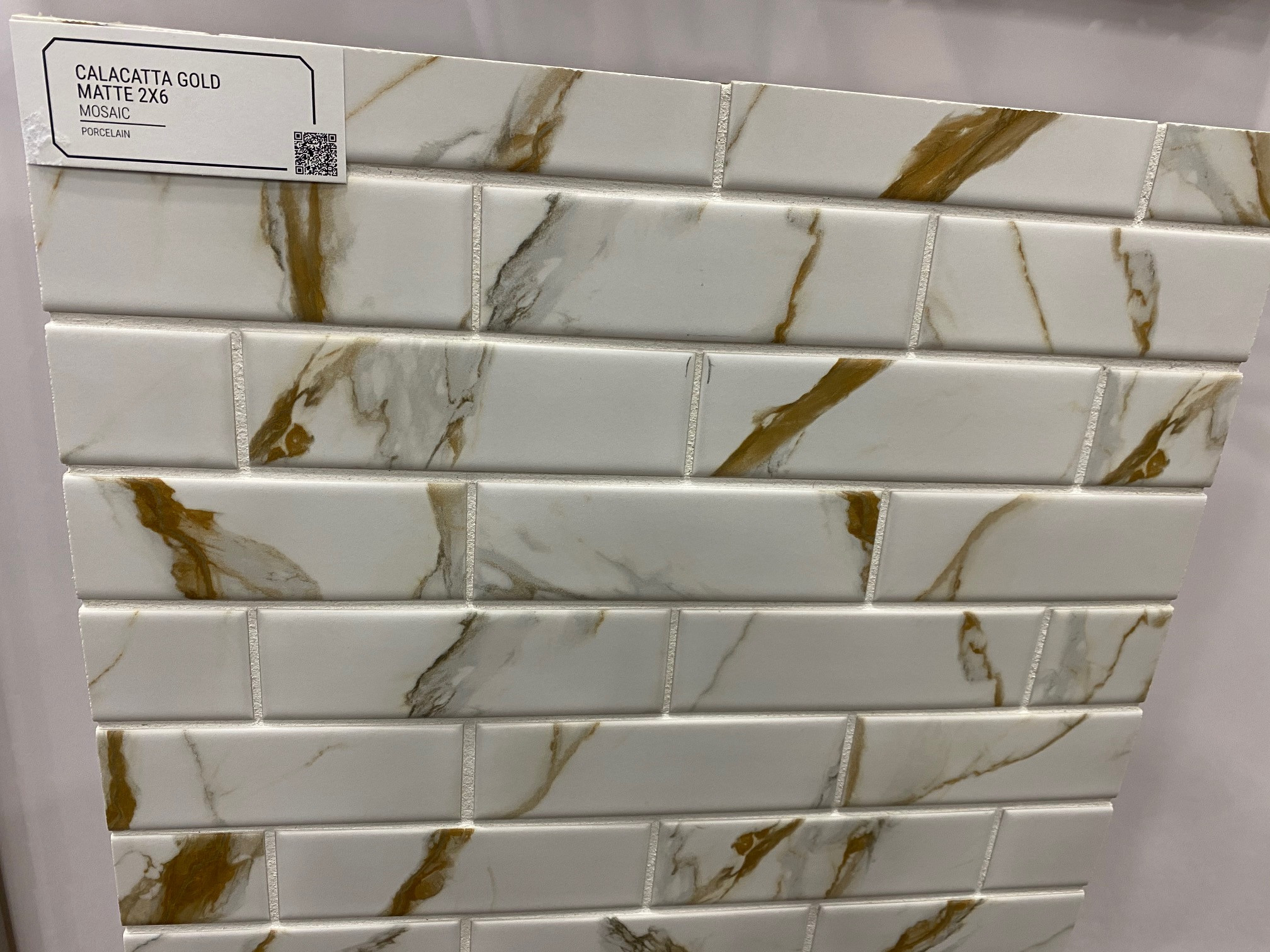 MSI’s Calacatta Gold 2-by-6-inch subway tile is an eye-fooling porcelain meant to look like marble, with elegant gold veins running through each tile.